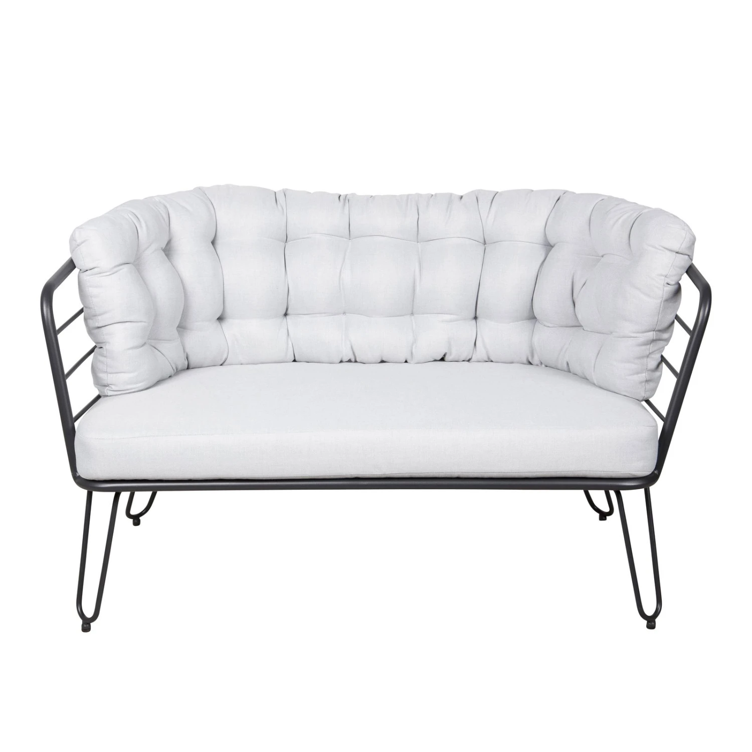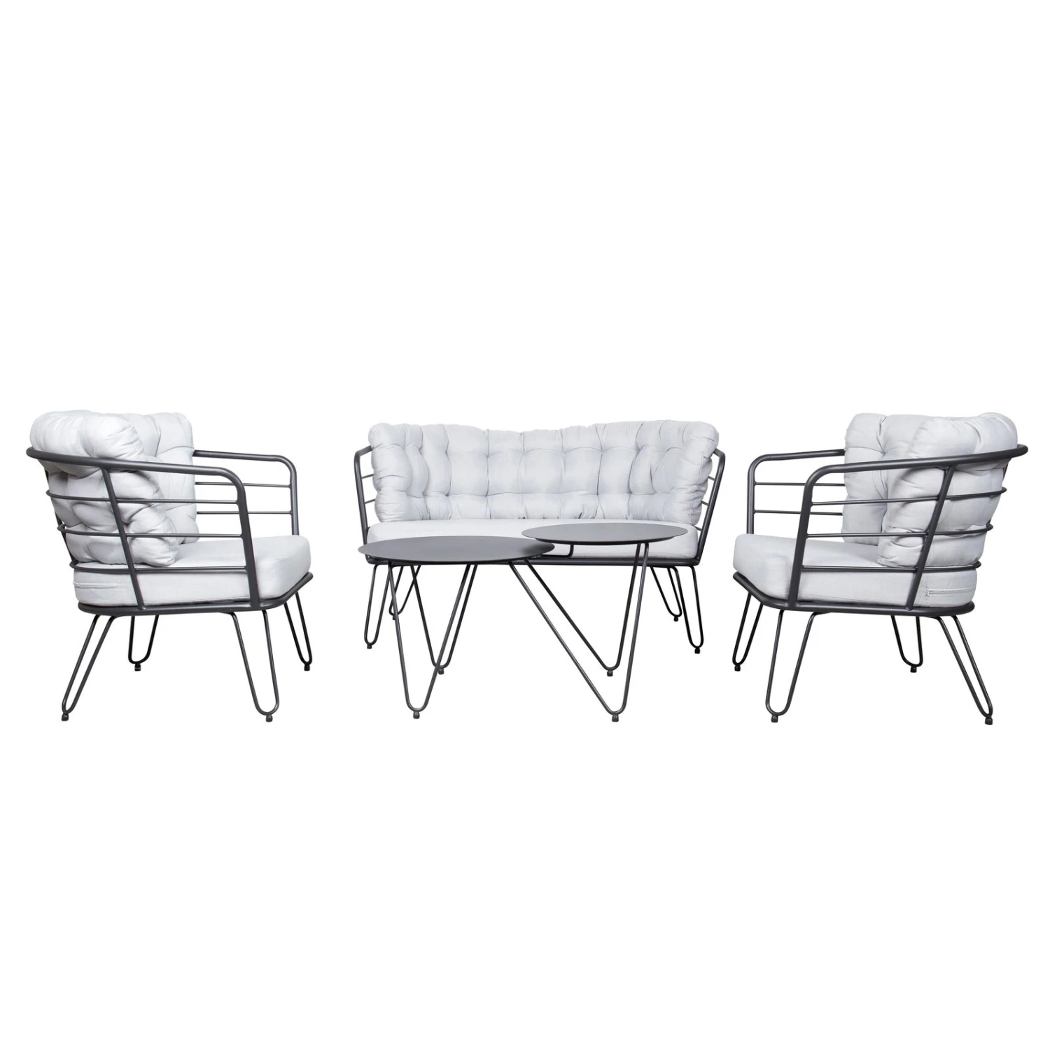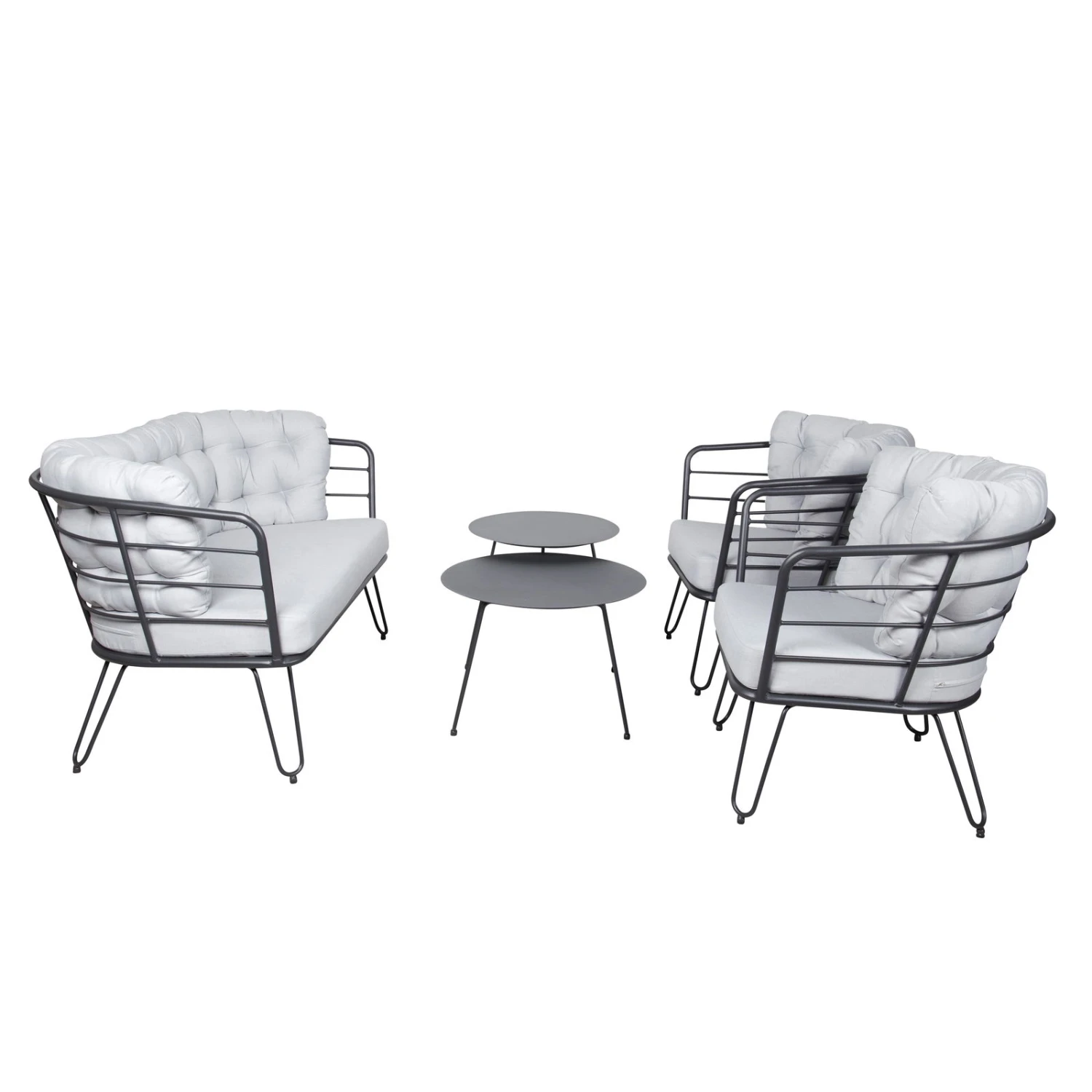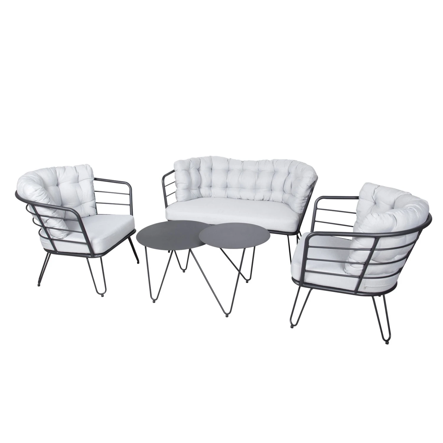 Die Alu-Loungegruppe ‚Bella‘ hilft Ihnen, Ihre Sitz- und Dining-Landschaft im Outdoorbereich mit maximalem Komfort zu gestalten. Diese Loungegruppe überzeugt durch stabiles und leichtes Gestell aus Aluminium in der Farbe Schwarz und weich gepolsterte Auflagen in Grau, die im Lieferumfang bereits inklusive sind.