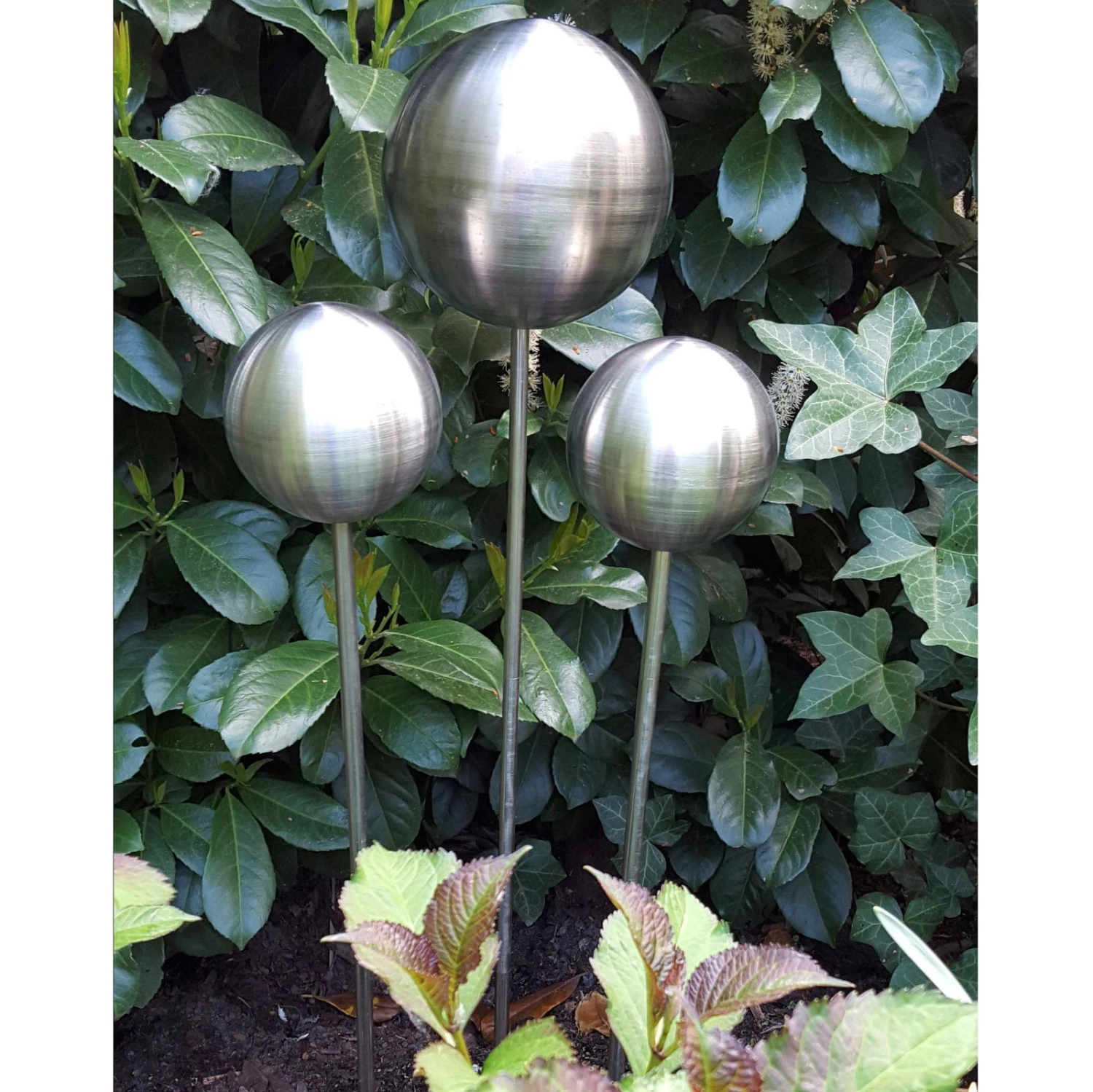 Beetstecker Rosenkugel, 20 Cm, Edelstahl / Matt Gebürstet, Rosenstab 80 Cm