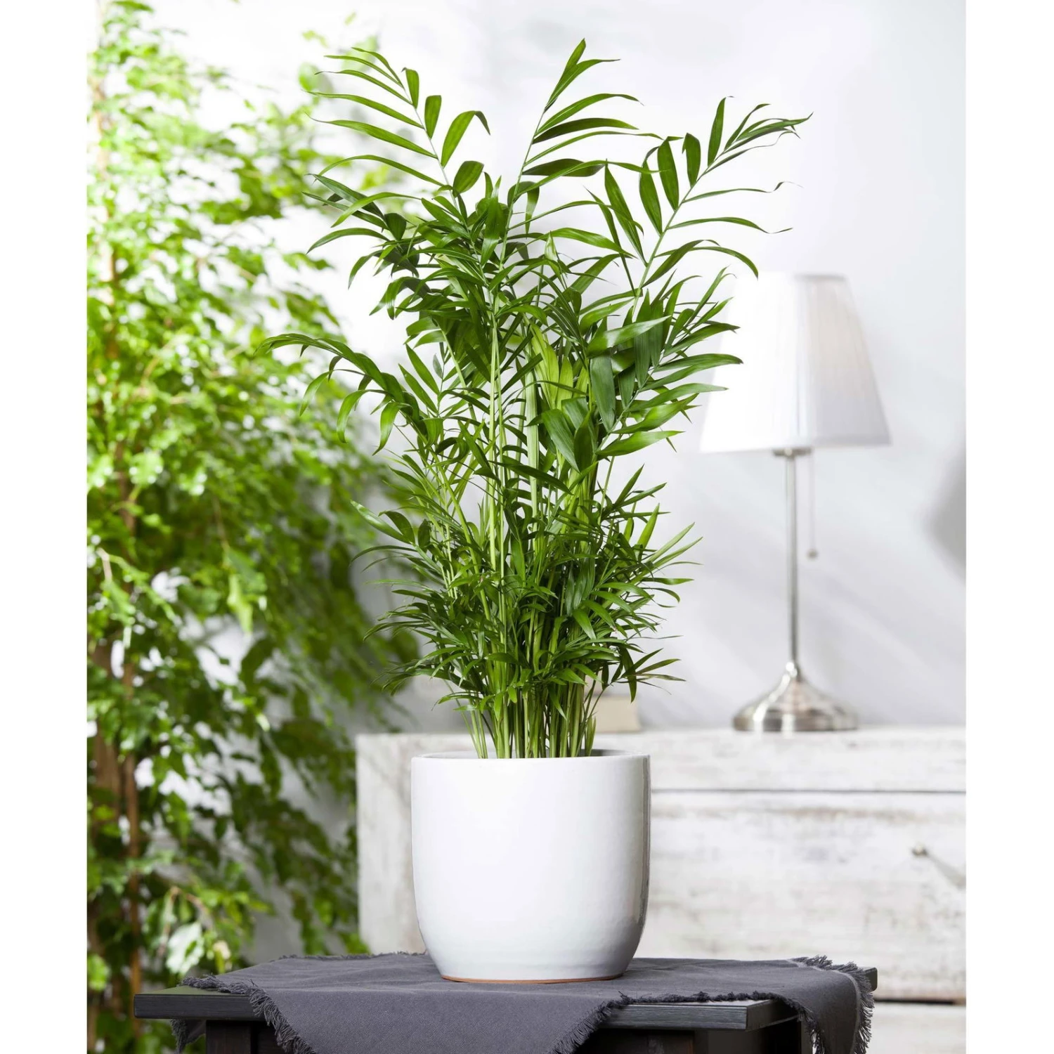 Die Mexikanische Bergpalme ‚Chamaedorea elegans‘ macht in einem Wohnzimmer, im Wintergarten oder auch in Ihrem Büro eine gleich gute Figur. Die Pflanze setzt mit ihren eleganten Wedeln in Sattgrün aparte Akzente und stellt keine hohen Ansprüche an die Pflege. Sie können die ‚Chamaedorea elegans‘ an einem absonnigen oder halbschattigen Standort pflegen, denn diese Pflanze kommt sogar mit relativ wenig Licht noch gut zurecht. Der Erdballen ist während der Vegetationszeit im Sommer unbedingt feucht zu halten. Im Winter braucht Ihre Mexikanische Bergpalme kühlere Temperaturen zwischen 12 und 15 Grad Celsius sowie moderate Wassergaben. Als Substrat eignet sich sowohl herkömmliche Blumenerde als auch spezialisierte Palmenerde.