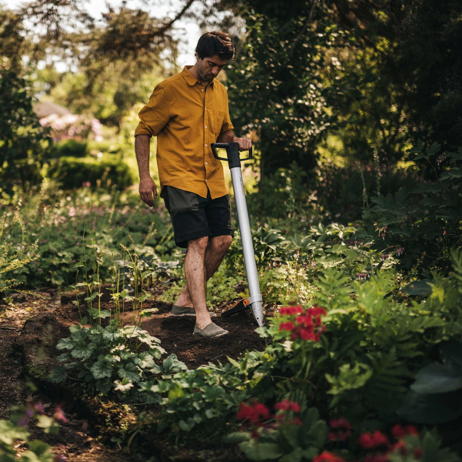 Mit dem Blumenzwiebel-Pflanzer Xact von Fiskars geht die Gartenarbeit sofort schneller von der Hand. Das Gartengerät gräbt Pflanzlöcher mit einer Tiefe von bis zu 15 Zentimetern. Dank eines Klingenverriegelungsmechanismus eignet sich der Blumenzwiebel-Pflanzer für Zwiebeln mit einem Durchmesser bis zu 5 Zentimetern. Für mehr Arbeitskomfort sorgen ein langer, robuster Stiel und eine praktische Trittfläche.