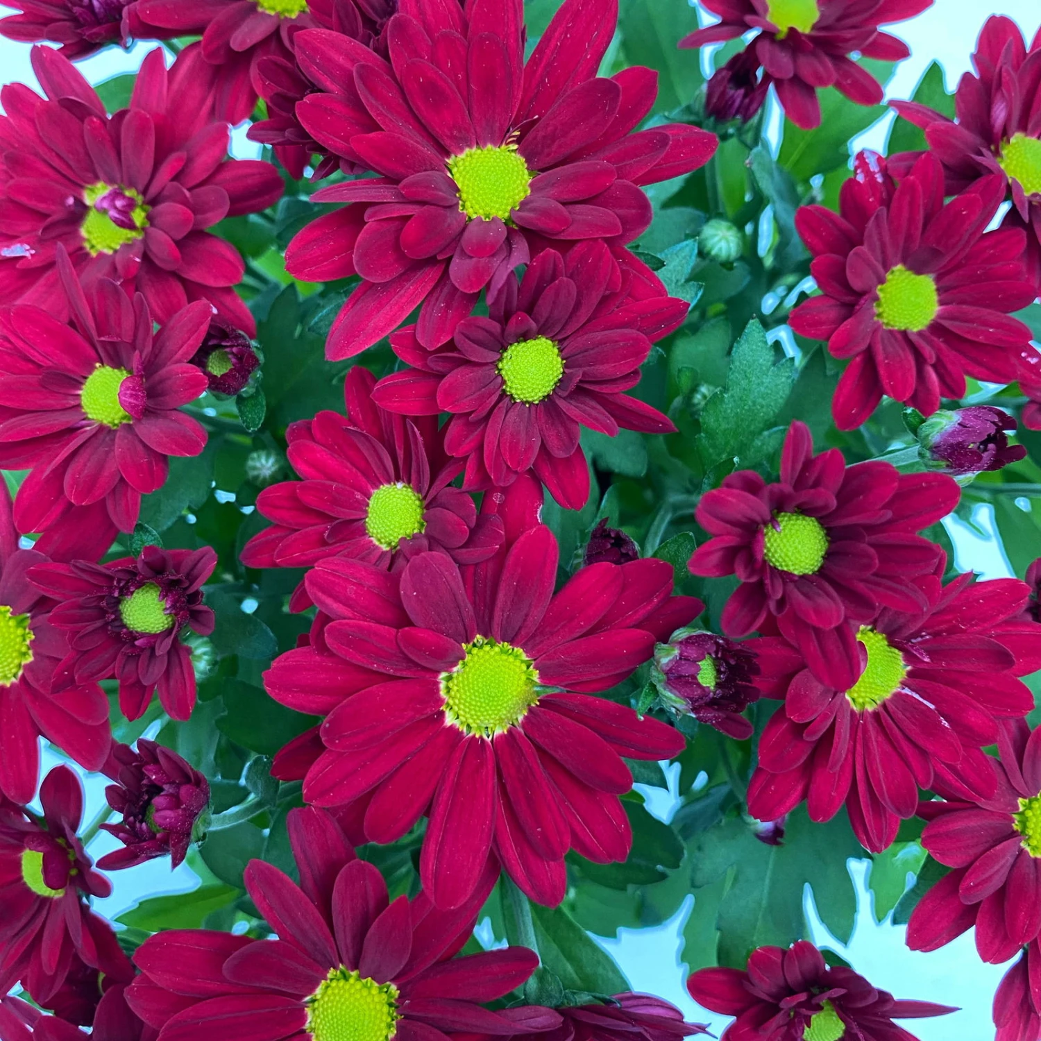 Holen Sie sich mit unseren Chrysanthemen den Herbst ins Haus. Die vielen kleinen, roten Korbblüten sorgen für eine Blütenfülle von Juni bis Oktober. Chrysanthemen bringen schnell und einfach Farbe, benötigen nur wenig Pflege und eignen sich für einen halbschattigen bis sonnigen Standort. Gerade am Hauseingang als bunter Willkommensgruß, im Garten, auf der Terrasse oder dem Balkon sind die bunten Herbst-Chrysanthemen garnichtmehr wegzudenken. Die pflegeleichten Beet- und Balkonpflanzen sollten dennoch regelmäßiges gegossen werden. Wie häufig Sie gießen müssen, hängt von der Temperatur, der Sonneneinstrahlung und der Größe des Wurzelballens ab. Generell gillt, je mehr die Chrysanthemen der Sonne ausgesetzt sind, desto schneller verblühen diese. Optimal zur Kombination eignen sich Gräser, Enzian, Calluna, Heide, Efeu, Buchs, Kleinkoniferen, Blattschmuckpflanzen, Stiefmütterchen, Hornveilchen und Kürbisse.
