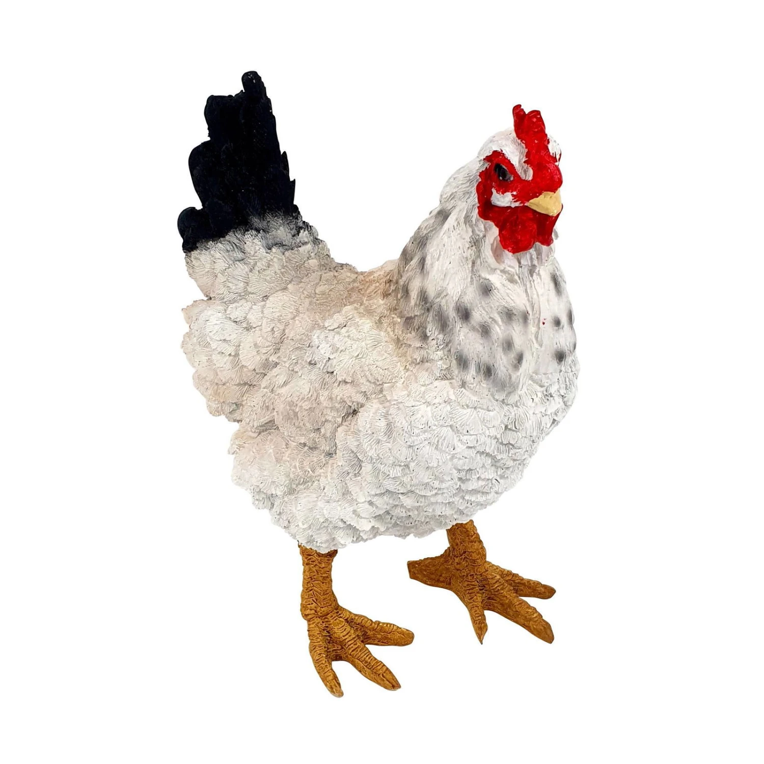 Auf den ersten Blick ist diese weiße Henne von einer echten Glucke kaum zu unterscheiden. Diese Gartendekoration aus hochwertigem Polyresin überrascht mit realistischen Details und ist sorgfältig handbemalt. Die Henne benötigt keinen Stall und ist unempfindlich gegen Regen und Schnee, glühender Hitze und Frost.
