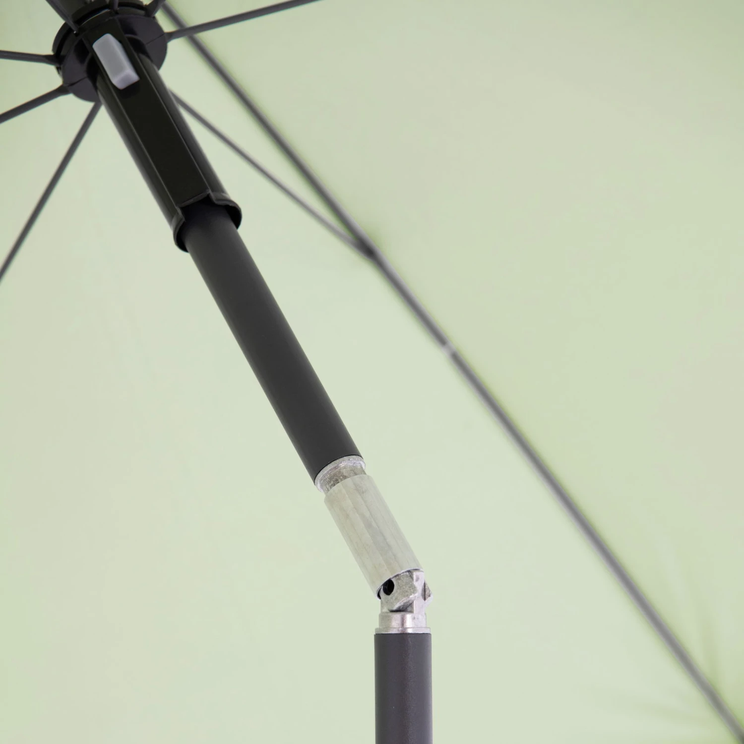 Der Beach-Sonnenschirm ‚Como‘ von Doppler präsentiert sich in augenfreundlichem Apfelgrün und ist mit ein paar Handgriffen jederzeit an den Sonnenstand angepasst. Dieser Mittelstock-Sonnenschirm lässt eine entspannte Strandstimmung entstehen und schützt Sie dank des LSF 50+ zuverlässig vor UV-Strahlen. Für einen stabilen Stand braucht der Sonnenschirm einen mindestens 25 Kilogramm schweren Sockel.