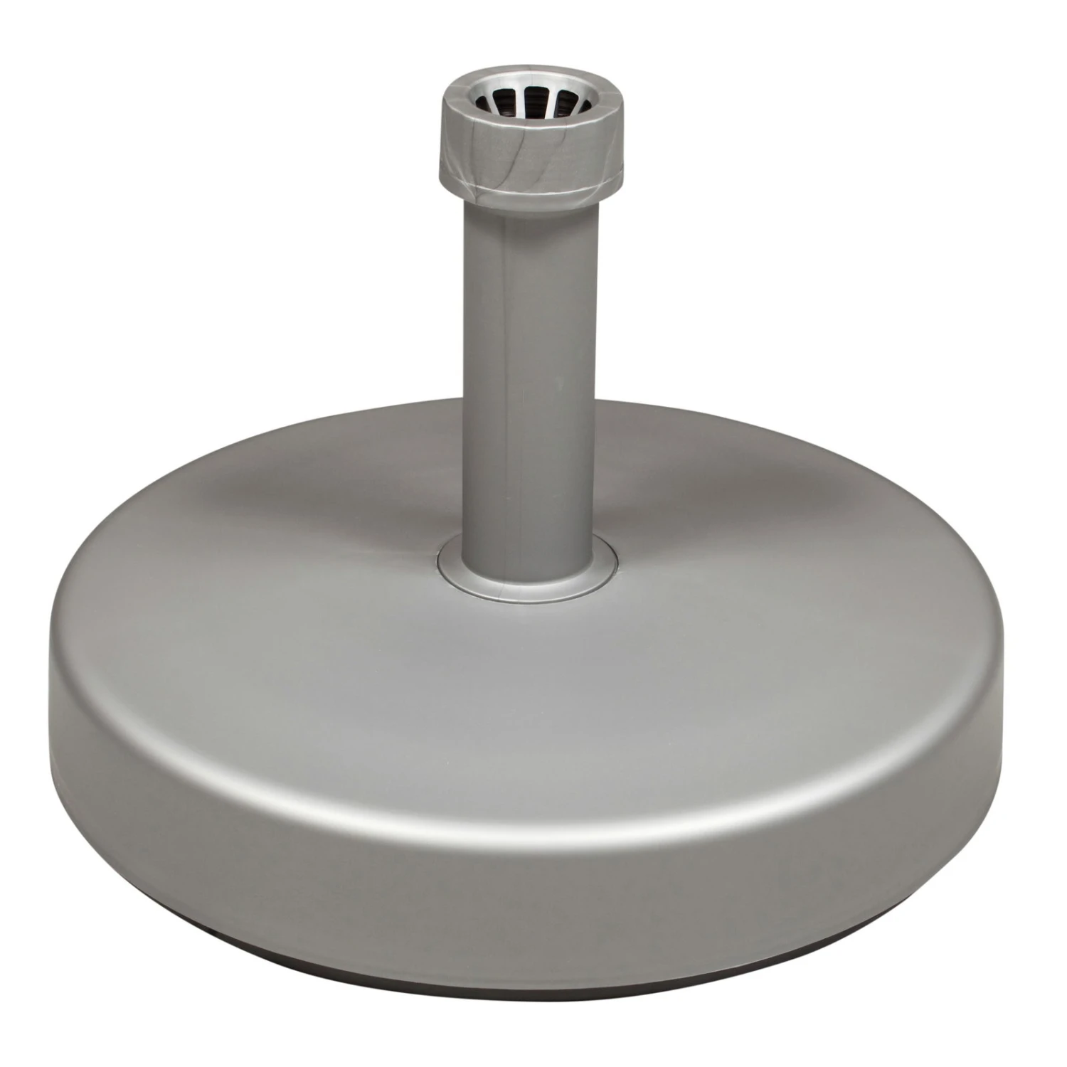 Zuverlässig und robust ist dieser Schirmsockel der Marke Doppler. Wenn Sie bisher der Meinung waren, dass es Sonnenschirmständer nur in den Standardfarben weiß und anthrazit gibt, haben wir eine Überraschung für Sie: In einem ansprechenden Silber kommt dieser Schirmständer daher und verleiht Ihrem Sonnenschirm den nötigen Halt.