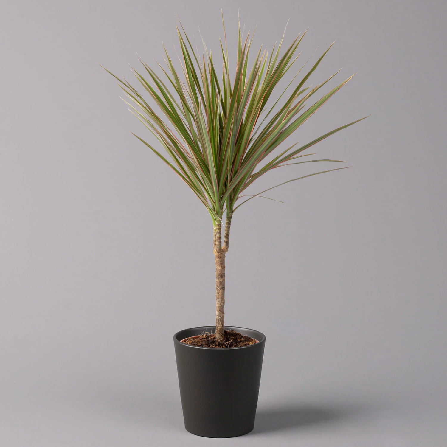 Er ist exotisch, auffällig gemustert und üppig geformt: Der Drachenbaum, auch Dracaena marginata ‚Bicolor‘ genannt. Diese Zimmerpflanze lässt sich an nahezu jeden Standort in Ihrer Wohnung oder im Büro aufstellen und schafft dadurch ein einzigartiges Ambiente. Nicht nur optisch wertet der Drachenbaum den Innenbereich auf, sondern filtert auch Schadstoffe aus der Luft. Fühlen Sie sich wie in der freien Natur und genießen Sie herrlich frische Luft! Die roten Streifen der schmalen Blätter sind zudem ein wahrer Hingucker. Nicht umsonst verdient diese Pflanze ihren Namen, denn das Muster erinnert an ein beeindruckendes Fabelwesen der chinesischen Kultur. Um diese Struktur zu erhalten, sollten Sie regelmäßig ein wenig Grünpflanzendünger zum Substrat geben. Tipp: Verfärben sich die Blätter und weisen gelbe Flecken auf, sollten Sie die Wasserzufuhr etwas reduzieren.