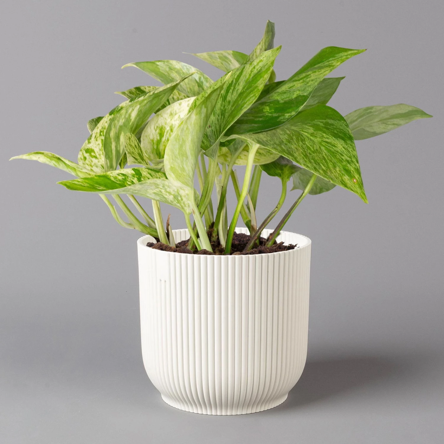 Efeutute ‚Marble Queen‘ Inkl. Übertopf Vibes Weiß, Topf-Ø 12 Cm, Höhe Ca. 15 Cm