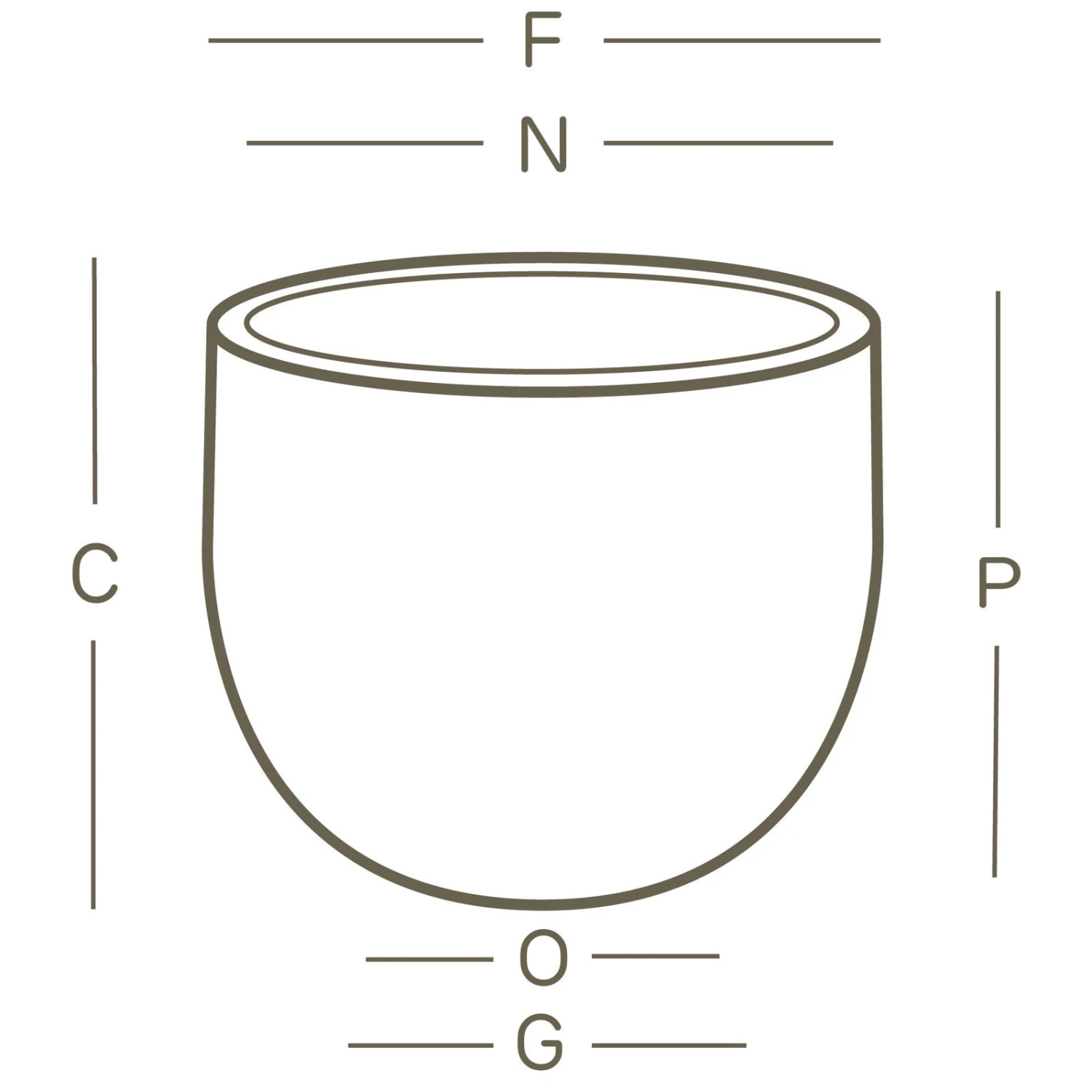 Ø 24 x H 20 cm, D 34 x H 28 cm, D 44 x H 36 cm, D 54 x H 44 cm, D 64 x H 52 cm