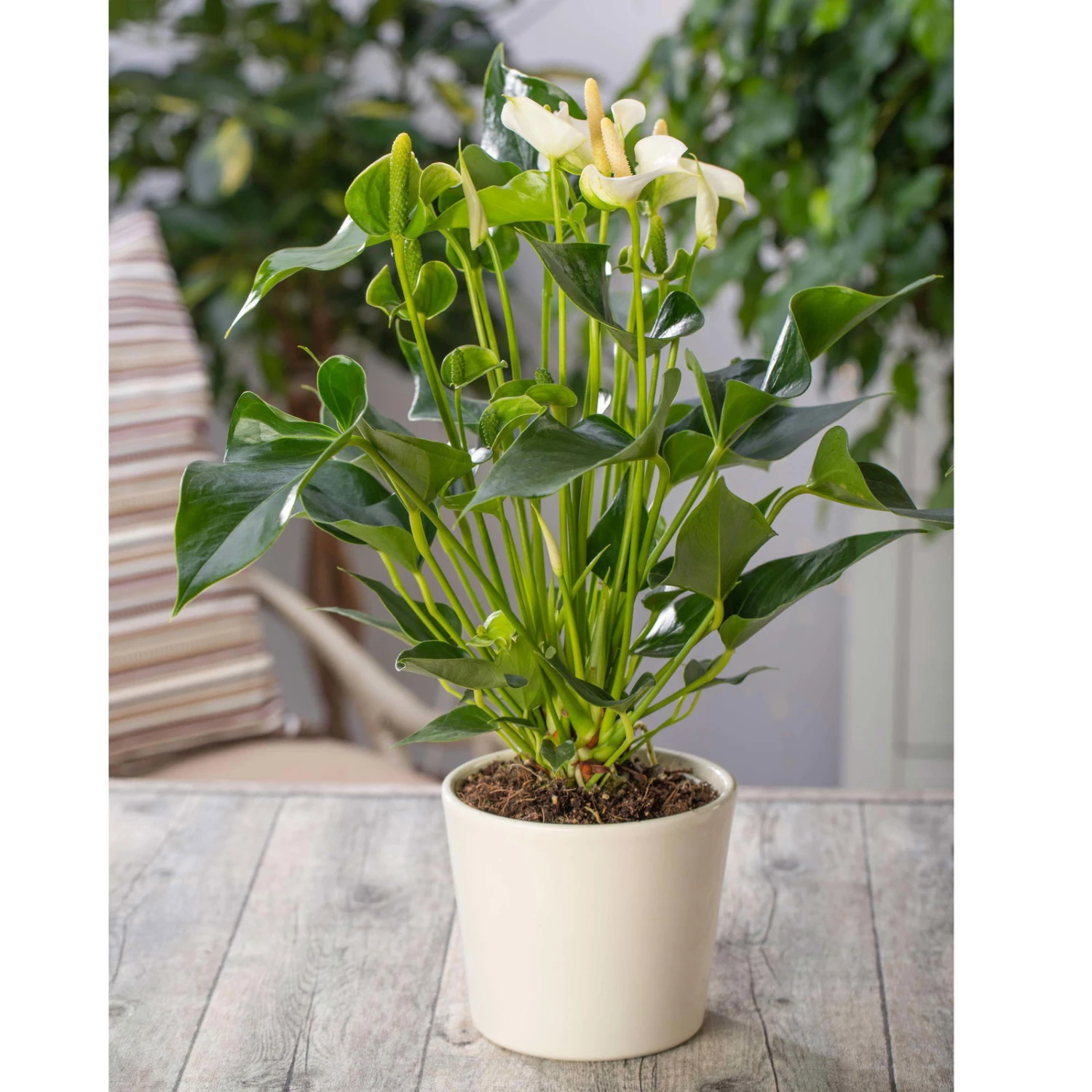 Flamingoblume, ‚White Champion‘, Weiß, Topf-Ø 14 Cm, Höhe Ca. 50 Cm