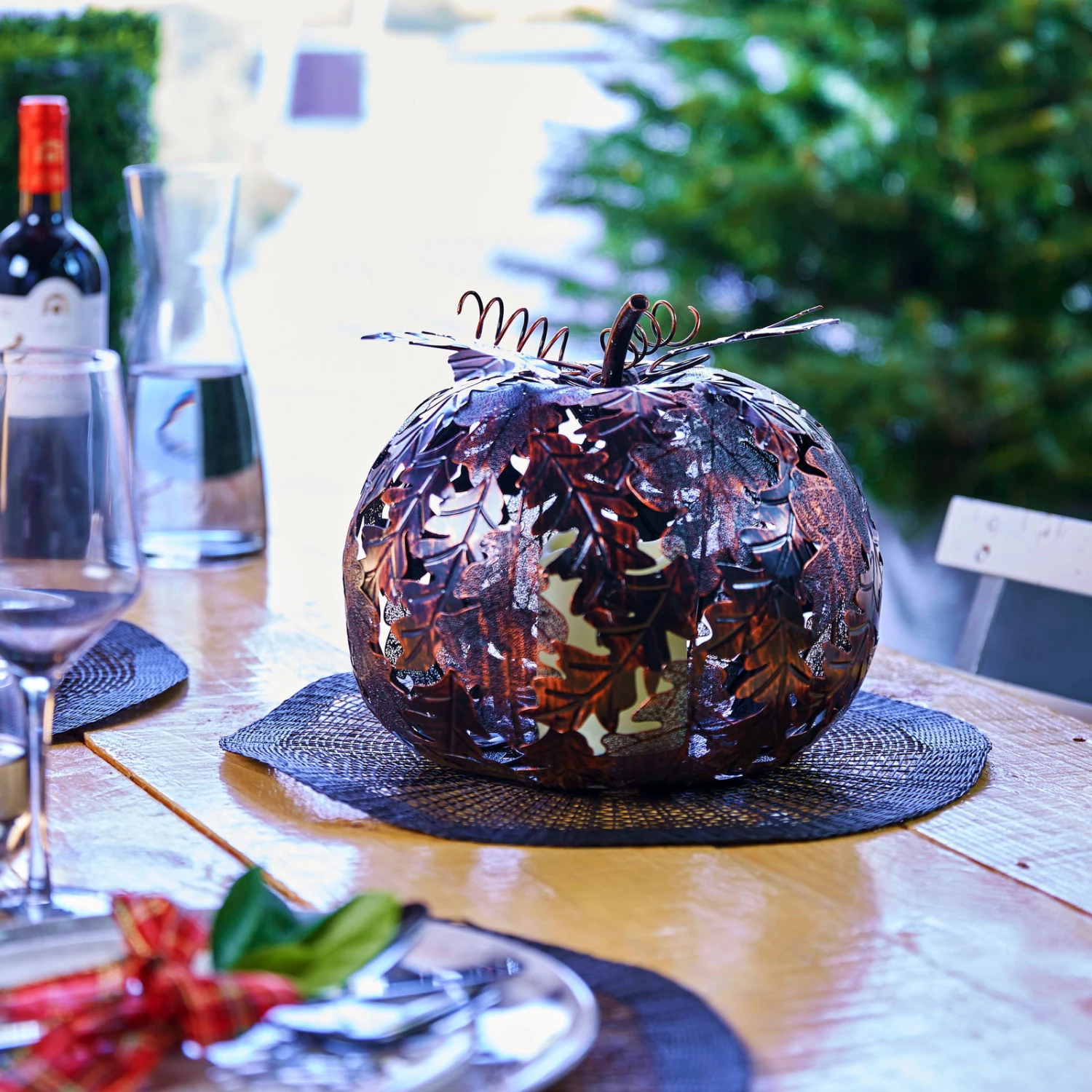 Gartenleuchte Kürbis Mit Blatt, Kupfer, Ca. 23,5 X 28 Cm