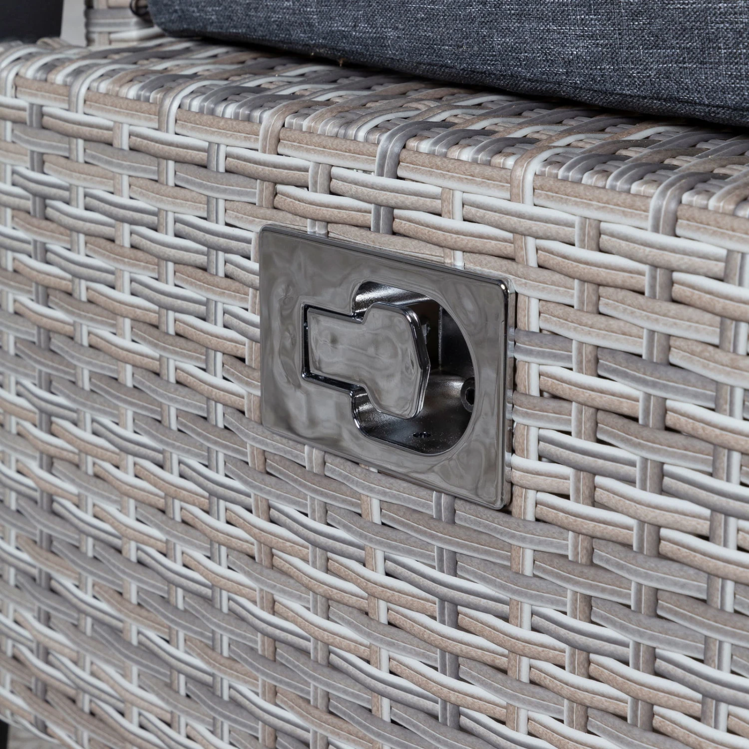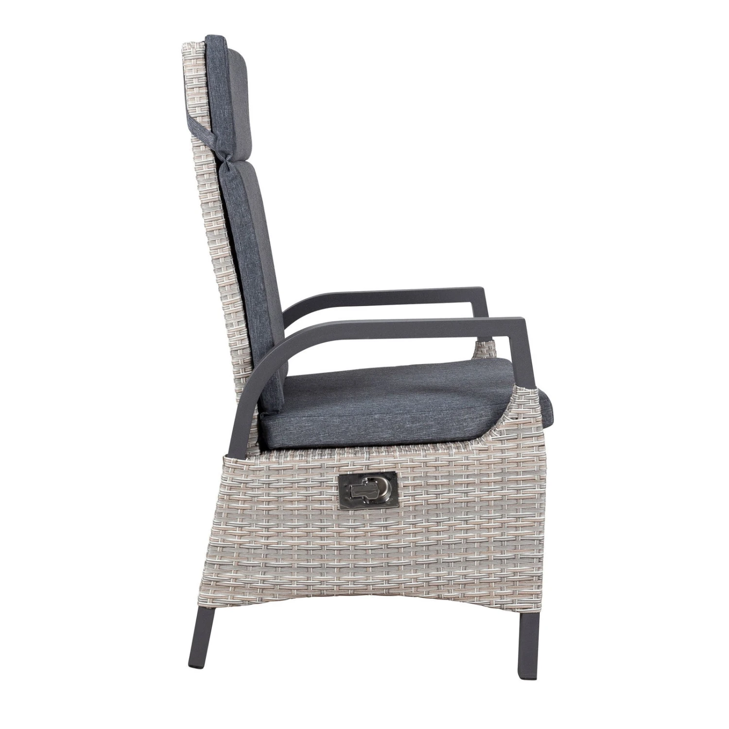 Dieser stilvolle Geflechtsessel aus Kunstrattan verleiht Ihrer Lounge-Landschaft eine zeitlos-rustikale Note. Der hochwertige Sessel ‚Westerland‘ aus Kunstrattangeflecht von Kölle ist Ihre komfortable, winterfeste und pflegeleichte Sitzgelegenheit auf der Terrasse oder dem Balkon, im Wintergarten oder auch im Wohnzimmer. Um es sich noch bequemer zu machen, können Sie die Rückenlehne stufenlos verstellen.