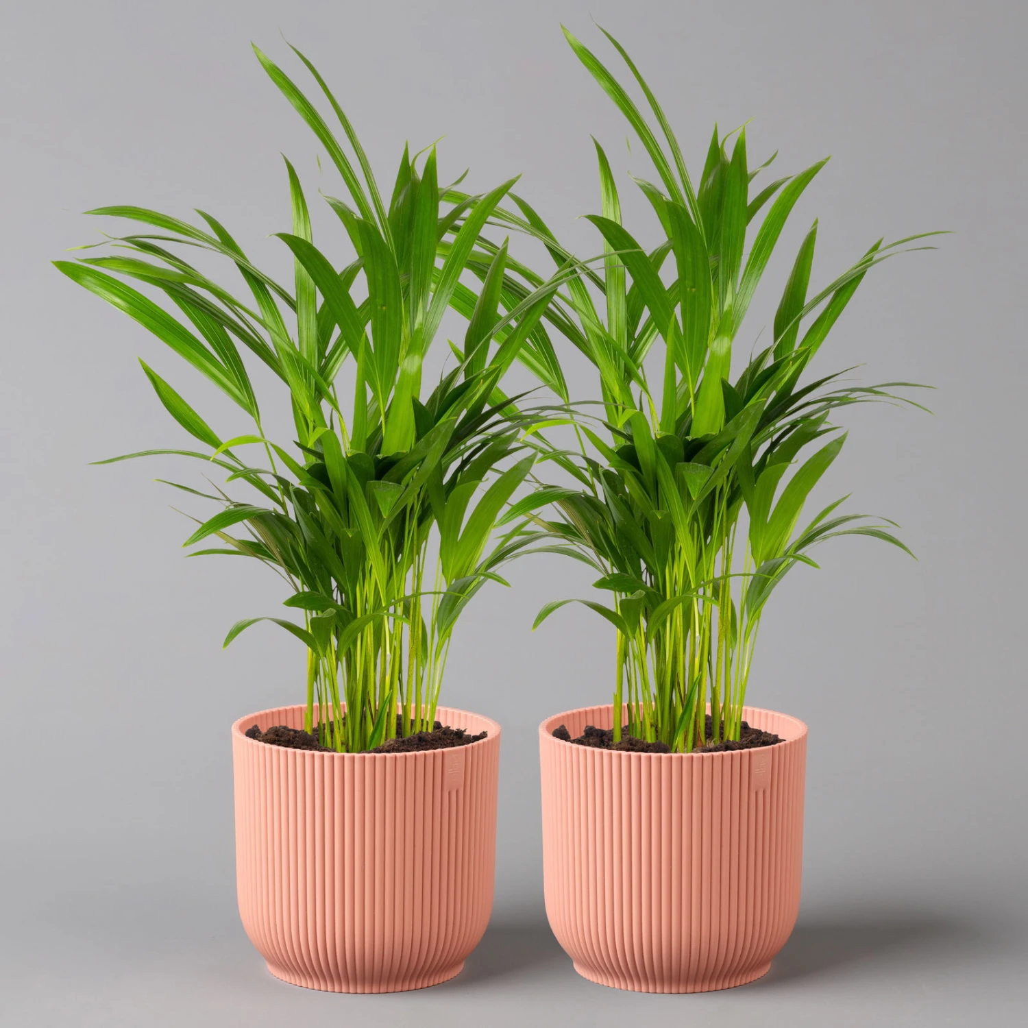 Jede Pflanze wird im Pflanztopf mit 13 cm Durchmesser inkl. Übertopf aus Kunststoff mit 14 cm Durchmesser geliefert.