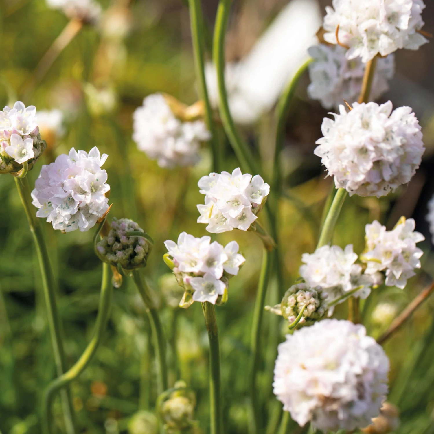 Die Kölle Strand-Grasnelke Armeria maritima ‚Alba‘ ist eine dekorative, kleinbleibende Gartenpflanze mit edlen weißen, filigranen Blüten. Diese Staude fühlt sich in nährstoffreichen, lockeren Böden und sonnigen Lagen besonders wohl. Sie können die Grasnelke als effektvolle Beeteinfassung, im Steingarten und sogar zur Dachbegrünung einsetzen, außerdem macht sie sich auch schön in Rabatten und Kübeln.