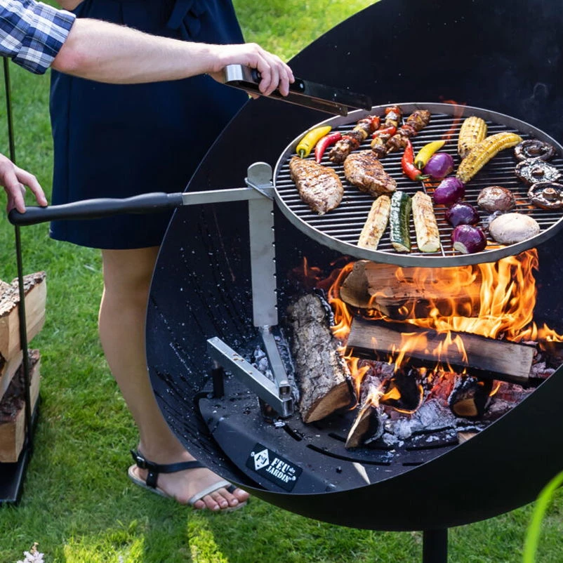 Dieser praktische Grillarm passt zu den meisten Feuerstellen aus der Produktserie Feu du Jardin. Der Grillarm ist stabil gebaut und mehrfach höhenverstellbar. Einen weiteren Vorteil stellt die Schwenkvorrichtung für ein Plus an Flexibilität dar. Das Grillzubehör aus beschichtetem Edelstahl hält hohen Belastungen stand und ist witterungsbeständig.