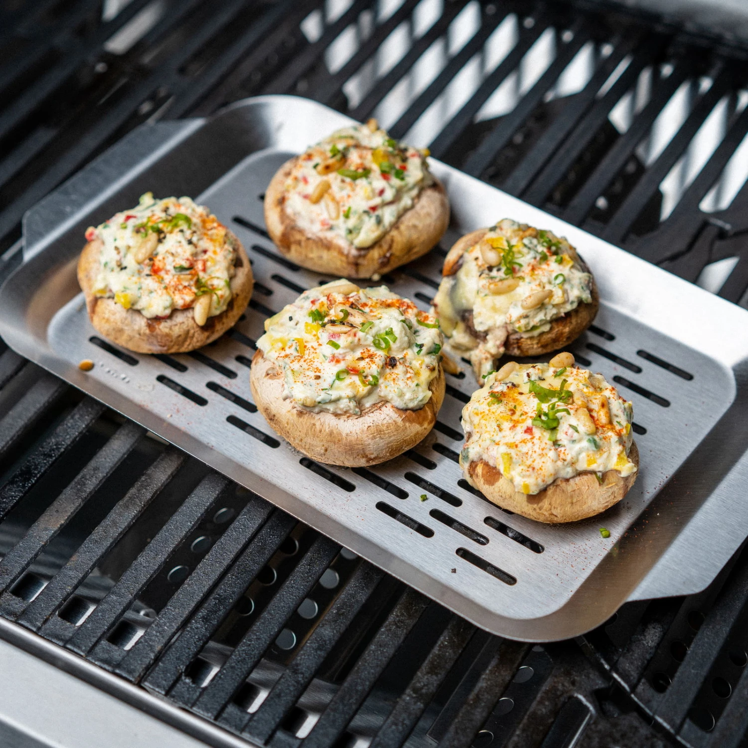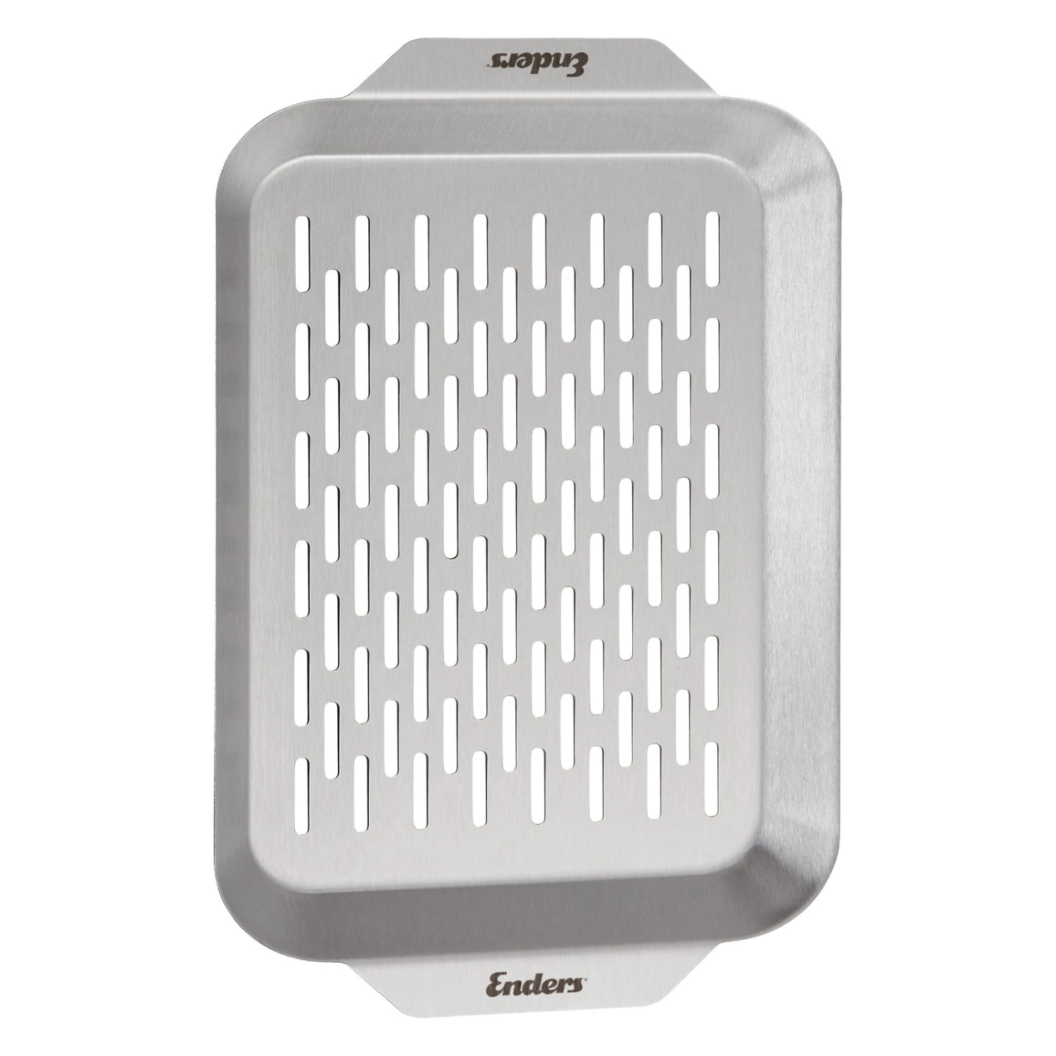 Bestücken Sie die Grillschale mit klein geschnittenem Gemüse, empfindlichem Fisch oder zarten Filetstücken – dank dieses Grillzubehörs lässt sich auch solches Grillgut zubereiten, das ansonsten durch den Grillrost fällt. Die Grillschale von Enders besteht aus robustem Edelstahl und verfügt für einfache Handhabung über bequeme Handgriffe.