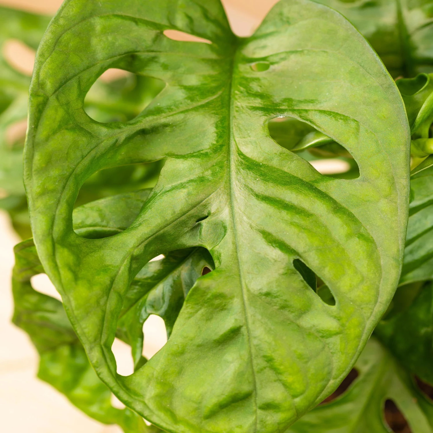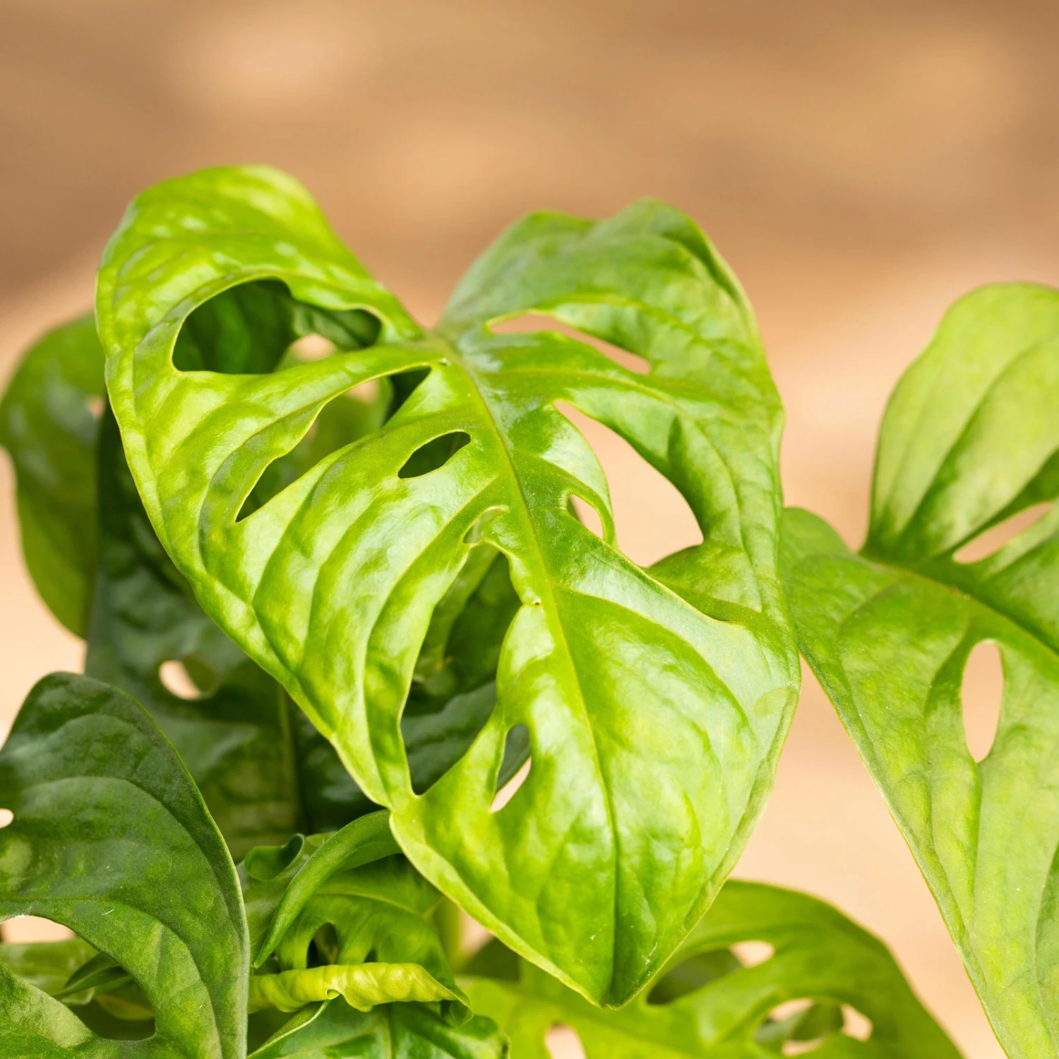 Die Monstera adansonii, das originelle Fensterblatt, begeistert mit der ungewöhnlichen Geometrie ihrer gelochten Blätter und lässt sich nicht nur als Kletter-, sondern auch als Ampelpflanze effektvoll in Szene setzen. Das Fensterblatt ist eine wärmeliebende Zimmerpflanze, die sich an einem halbschattigen bis schattigen Standort mit hoher relativer Luftfeuchtigkeit wohlfühlt. Wir empfehlen, die Monstera nur sparsam zu gießen, das Substrat jedoch nie austrocknen zu lassen. Regelmäßige Sprühbäder mit lauwarmem und kalkarmem Wasser tun diesem Gewächs ausgesprochen gut. Sie können das Fensterblatt in herkömmlicher Zimmerpflanzenerde über Jahre hinweg erfolgreich pflegen und für eine harmonische Entwicklung alle 14 Tage mit einem Grünpflanzendünger versorgen. Bitte stellen Sie Ihre Monstera außerhalb der Reichweite von Kindern oder Hautieren auf, da ihr Pflanzensaft giftig ist.