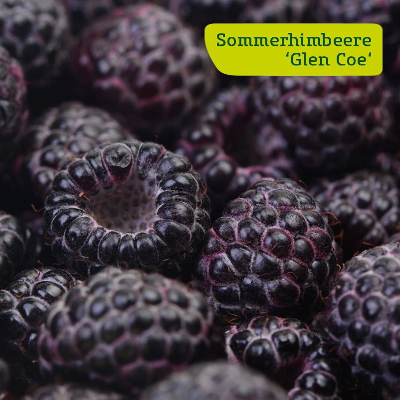 Das 4er-Himbeer-Set ‚Dunkle Früchtchen‘ bietet Ihnen zwei beliebte Sommerhimbeeren ‚Black Jewel‘ und ‚Glen Coe‘ an. Die Himbeere ‚Black Jewel‘ ist zwischen Ende Juni und Mitte Juli pflückreif und begeistert mit ihren weiß bereiften, schwarzen, sehr aromatischen und schmackhaften Beeren. Die stachellose Sommerhimbeere ‚Glen Coe‘ trägt zwischen Ende Juni und August purpur-violette Beeren mit einem vollmundigen, süßen Geschmack. Beide Himbeer-Sorten sind wetterfest und winterhart. Am besten gedeihen die Sträucher in einem nährstoffreichen, lockeren Substrat und in vollsonnigen, warmen Lagen. Wir empfehlen, abgetragene Ruten bodennah abzuschneiden, um im nächsten Jahr eine reiche Ernte einzufahren. Bitte beachten Sie, daß Himbeeren ausläuferbildend sind. Sollen diese sich nicht ungehindert im Garten ausbreiten, empfehlen wir eine Wurzelsperre.