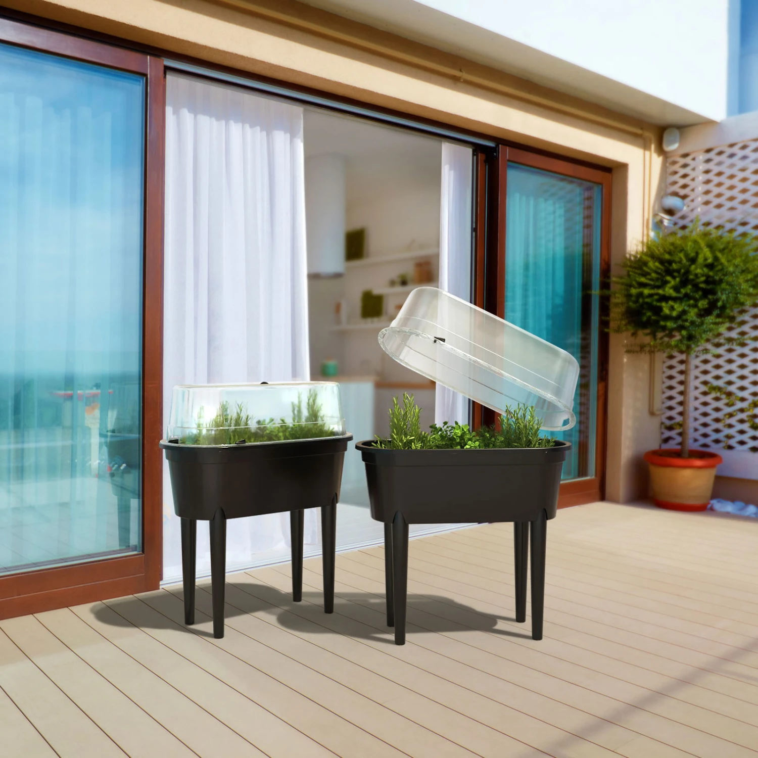 Hochbeet Mit Deckel, Anthrazit, L80 X B40 X H83 Cm
