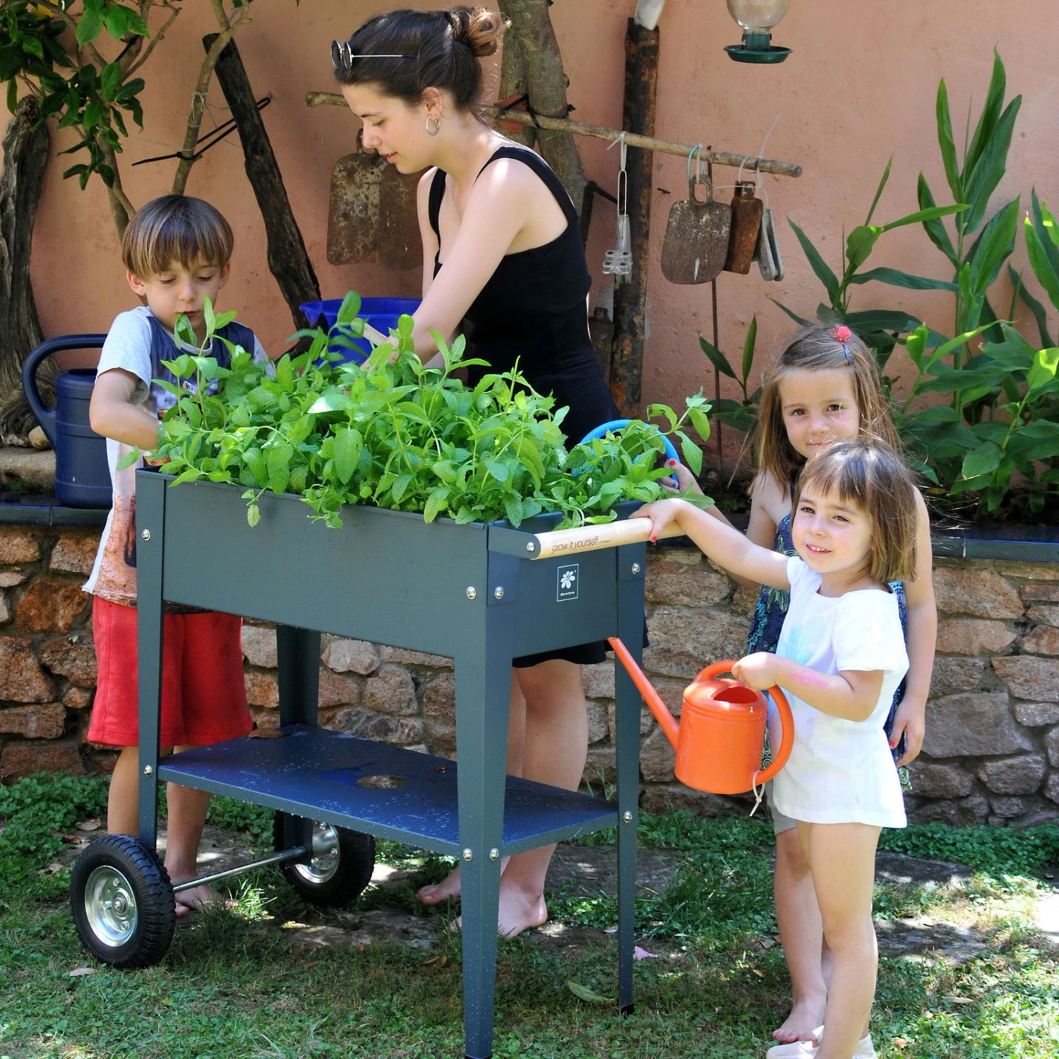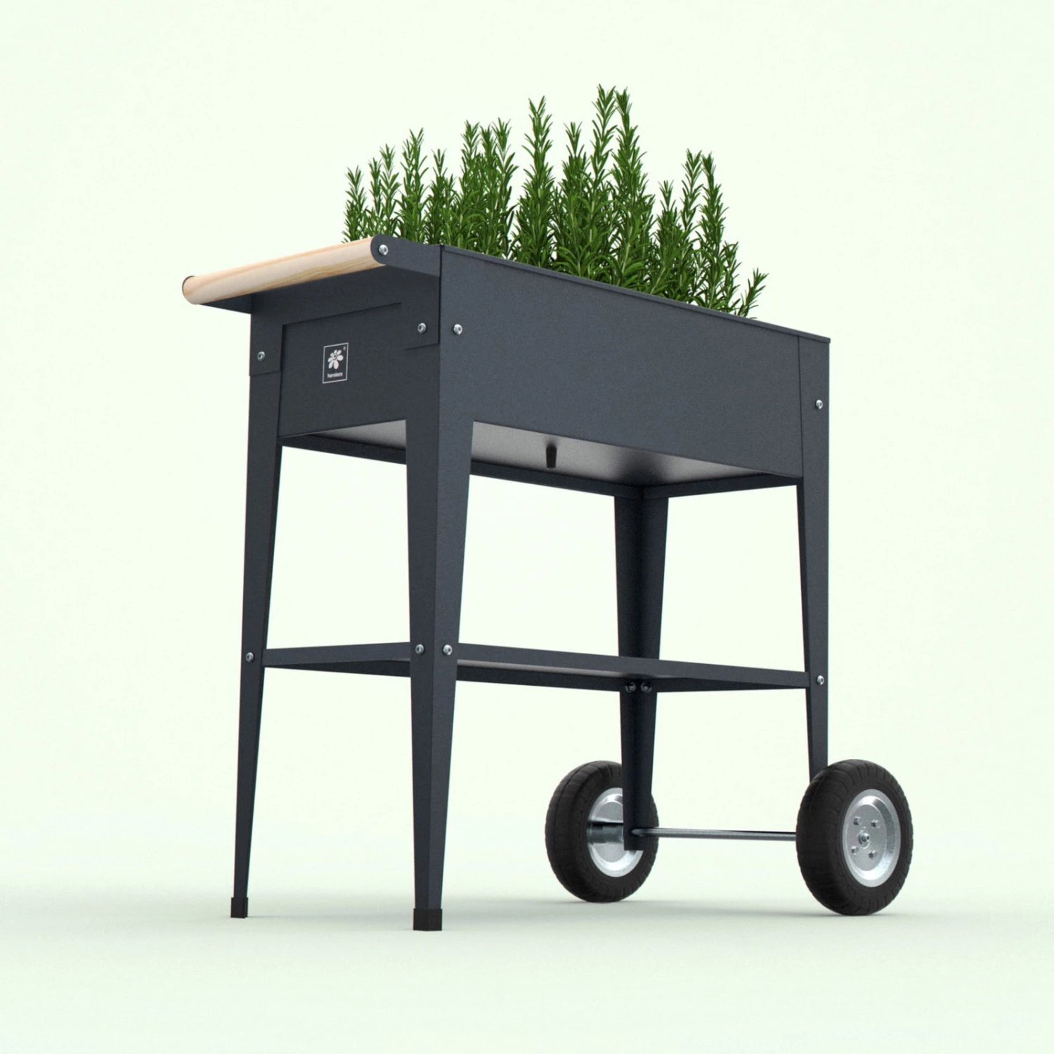 Dieser Hochbeet-Trolley von der Firma Herstera in der Farbe Anthrazit ist Ihre funktionelle, mobile Lösung für die Begrünung des Outdoor-Bereiches. Gestalten Sie Ihre Terrasse oder Ihren Balkon exakt nach Ihrem Wunsch. Der Trolley ist mit stabilen Rollen ausgestattet und aus einem witterungsbeständigen, feuerverzinkten Metall hergestellt.