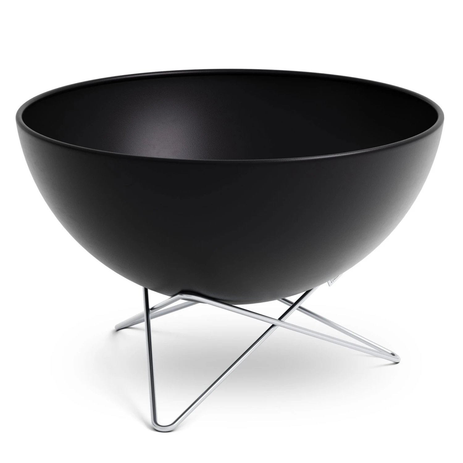 Dabei sitzt die schwarze Stahlhalbkugel sicher auf dem Sternfuß und bietet in ihrer horizontalen Ausrichtung Wärme für zahlreiche Freunde.