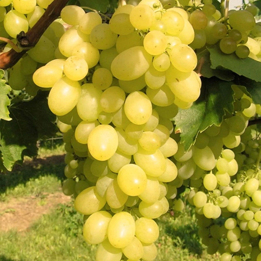 Süße, kernlose Tafeltraube, die als robuste Hausgartensorte überzeugt: Genießen Sie mit der kernlosen Tafeltraube ‚Carina‘ (Vitis vinifera ‚Carina‘) gelbe, große und kernlose Beeren, die in formschönen, lockeren und großen Trauben angeordnet sind.