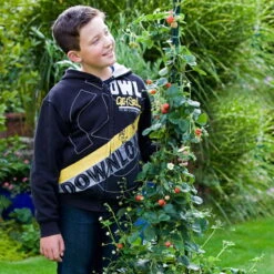 Hummi® „KletterToni“ – das Original unter den Klettererdbeeren aus der Züchtung von Reinhold Hummel. Die stark rankende, dem Himmel entgegenstrebende Klettererdbeere erfreut sich seit den 50er Jahren einer stetig wachsenden Fangemeinde. Jahr für Jahr zieht der Klettermaxe von Hummi in unzählige Gärten, auf Balkone und Terrassen ein und beglückt Groß und Klein mit mittelgroßen, leuchtend roten und aromatisch süßen Früchten.