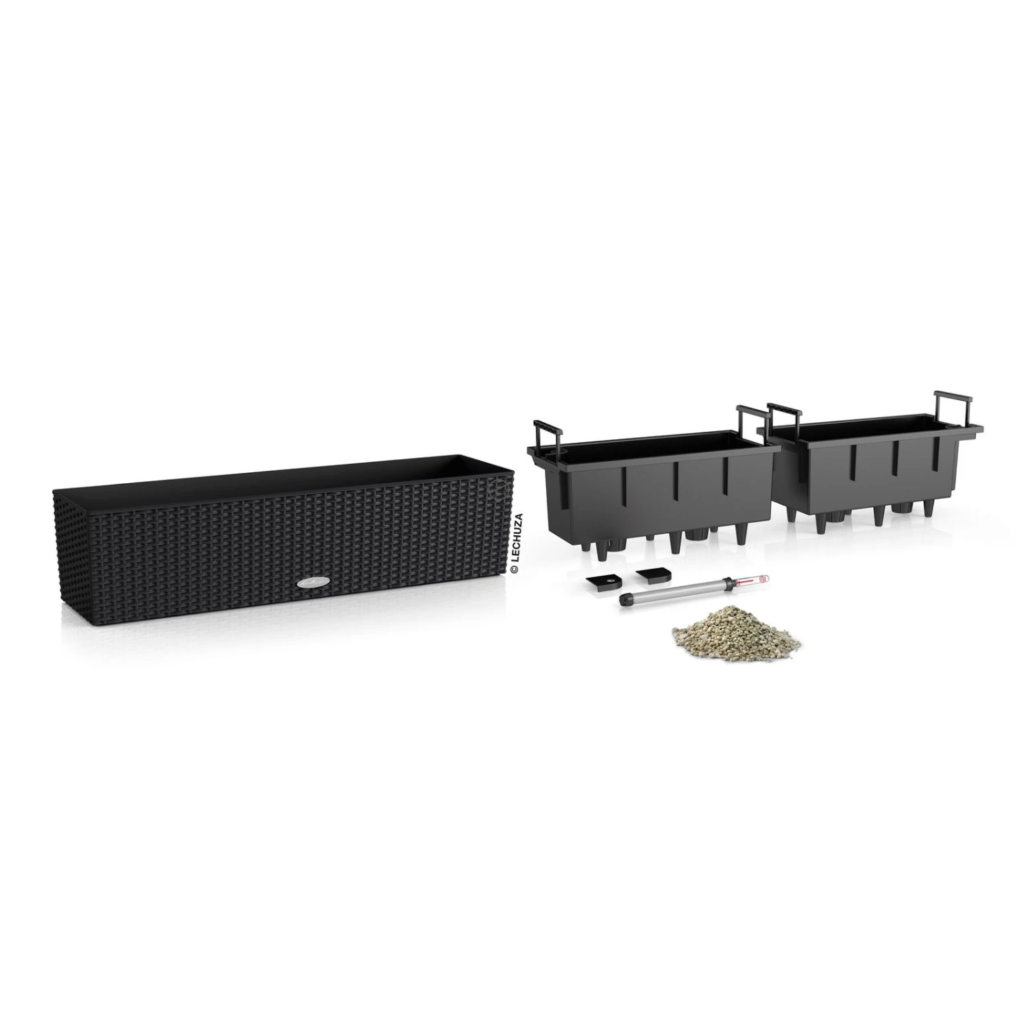 Der Pflanzkasten ‚Balconera Cottage 80‘ von Lechuza präsentiert sich in elegantem Lichtgrau und besticht durch trendige Flechtoptik. Ein Pluspunkt dieses hochwertigen Balkonkastens aus UV-beständigem Kunststoff ist eine integrierte Bewässerung. Je nach Wunsch können Sie den Pflanzkasten auch für Indoor-Begrünung verwenden.