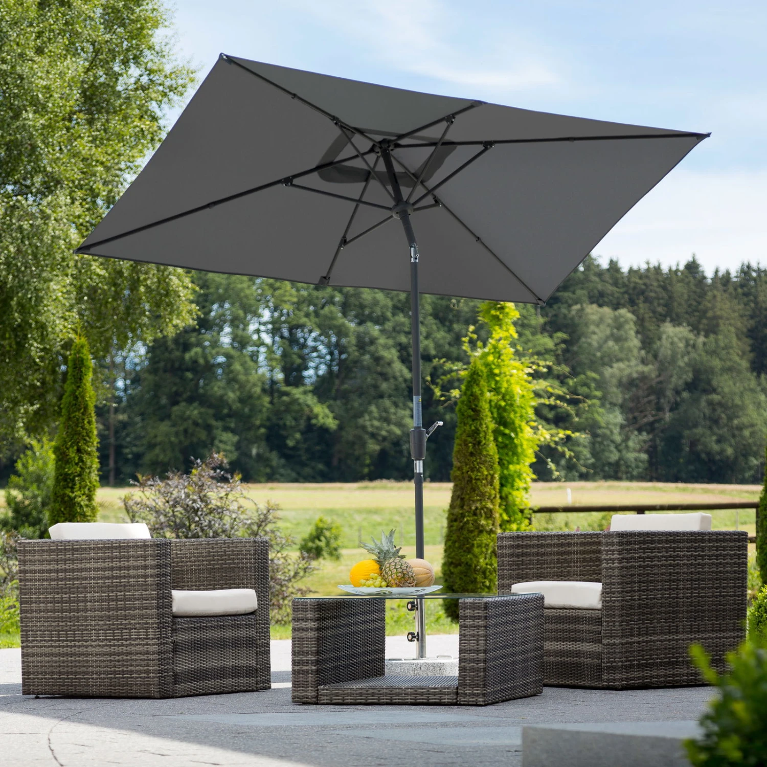 Nur ein paar Handgriffe – und Sie genießen wohligen Schatten an einem glühend heißen Sommertag. Der Sonnenschirm TUNIS von Schneider lässt sich mühelos aufspannen und an den aktuellen Sonnenstand anpassen. Sie brauchen nur noch einen passenden, rund 50 Kilogramm schweren Sockel. Ein weiterer Pluspunkt ist die wasserabweisende, imprägnierte und pflegeleichte Bespannung aus Polyester.
