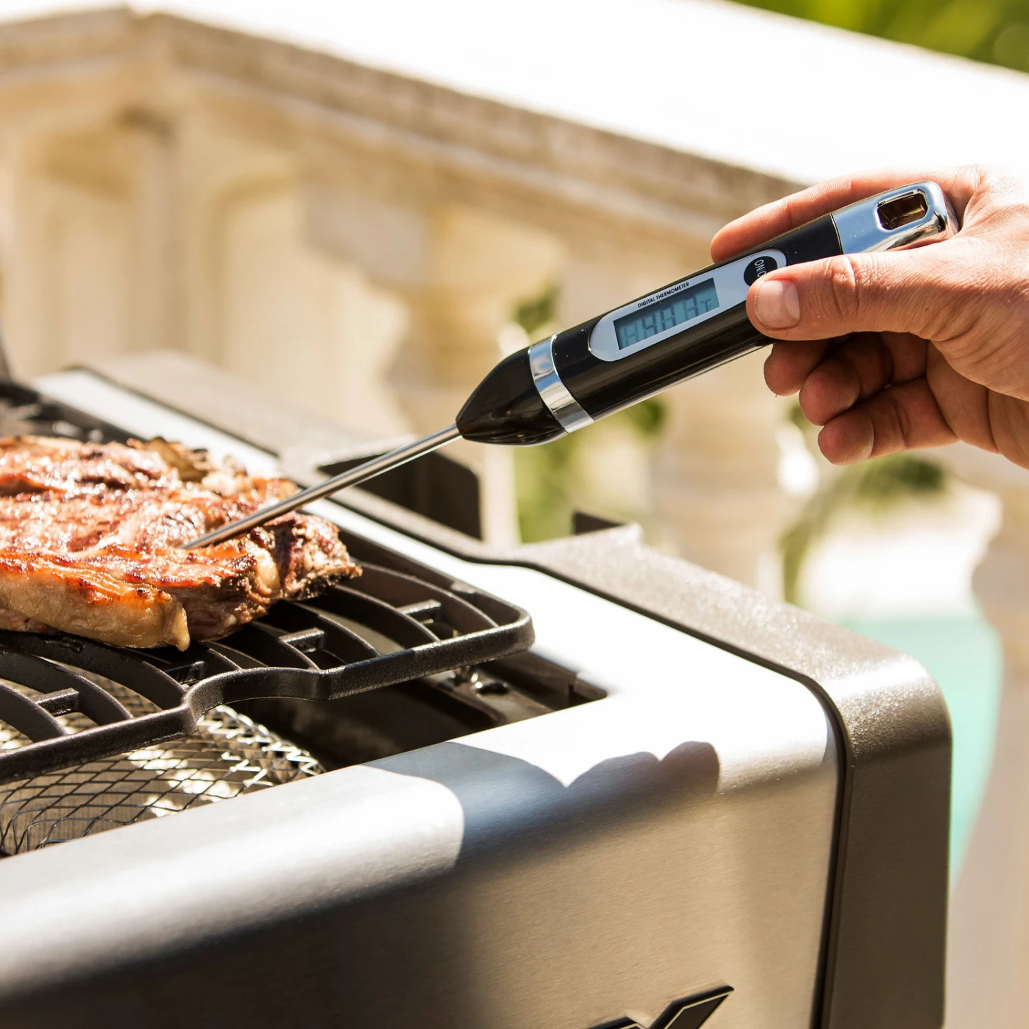 Das Napoleon Gourmet Grills Digital Thermometer zeigt Ihnen schnell, zuverlässig und präzise die Kerntemperatur im Grillgut an. Prüfen Sie Fleisch- und Fischgerichte und behalten den Gargrad des Grillguts immer im Auge. Unkompliziert in der Bedienung, reinigen Sie das Digital Thermometer mit etwas Seife und Wasser.