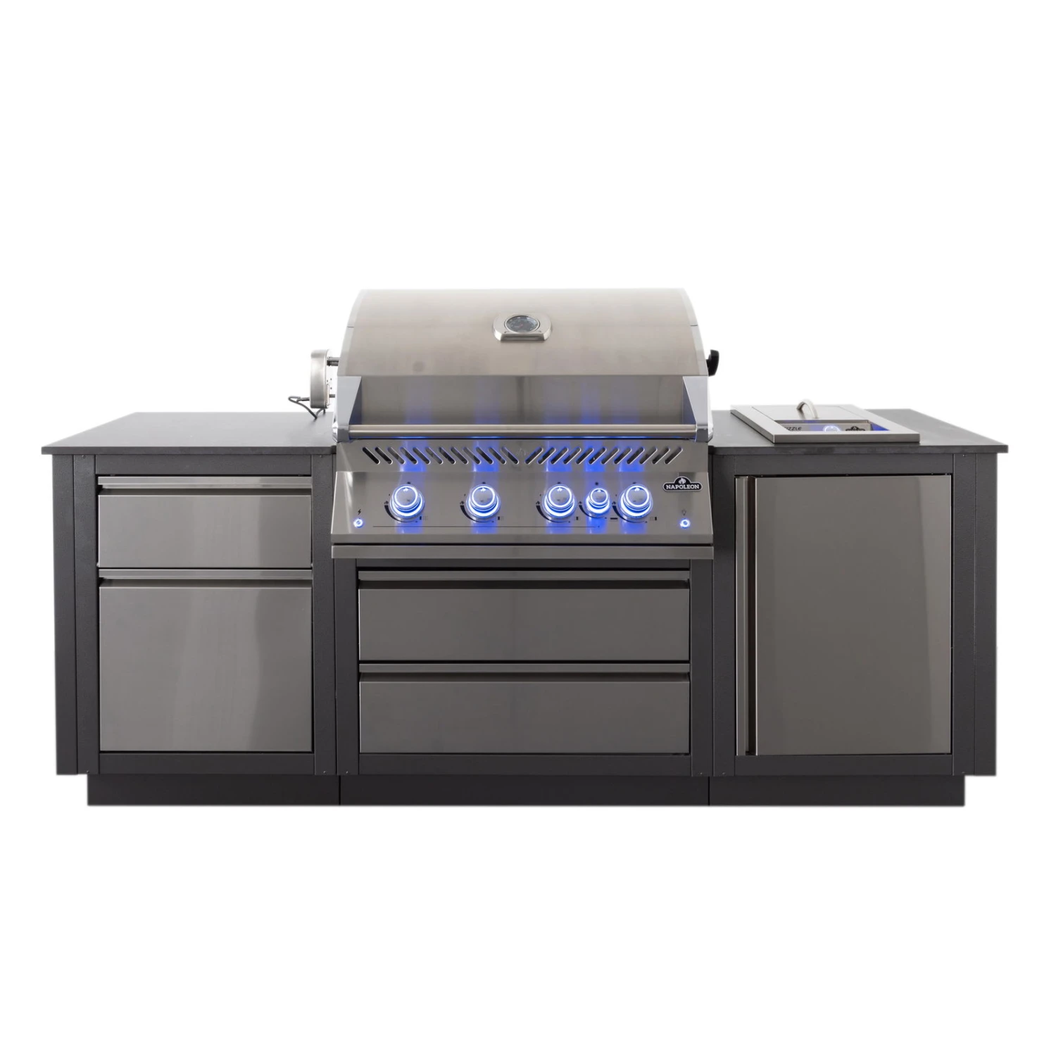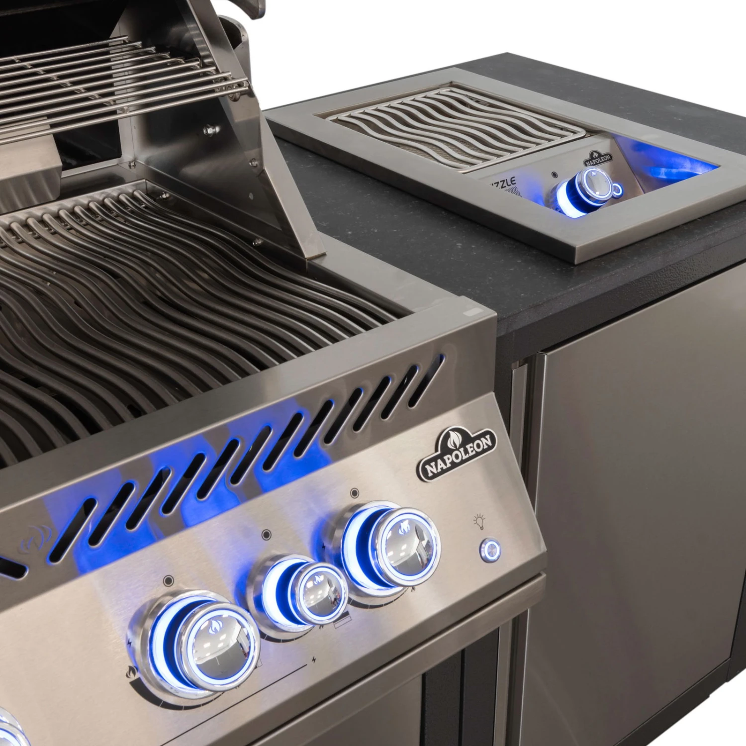 Geben Sie sich nur mit dem Besten zufrieden und grillen Sie mit der Outdoorküche ‚Oasis Compact 105‘ aus dem Hause Napoleon auf eine luxuriöse Art. Die moderne Outdoorküche mit dem Einbaugrill ‚700-Series 32″ BIG32‘ bietet alles für ein perfektes Grillevent, darunter leistungsstarke Edelstahlbrenner, den Infrarot-Seitenbrenner SIZZLE ZONE™ und reichlich Stauraum für Grillzubehör. Die Lieferung erfolgt meist innerhalb von 3 Werktagen.
