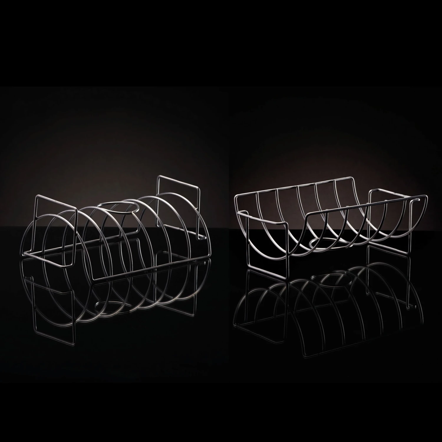 Multifunktionaler Braten- und Ribshalter & Bierdosenhähnchen-Korb aus Edelstahl, spülmaschinenfest. Napoleon® Alutasse # 62008 passt genau darunter, 5 cm x 20 cm x 13 cm