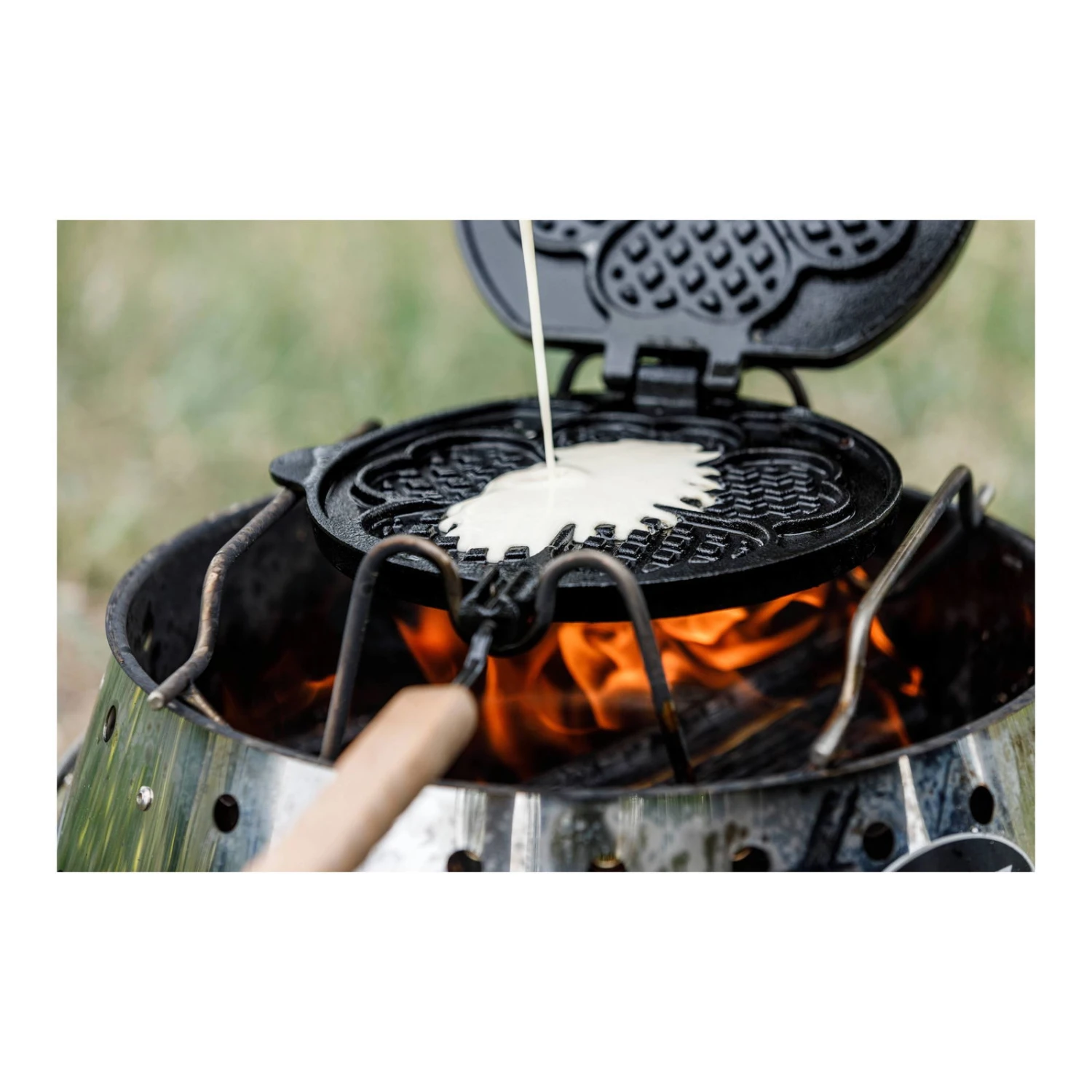 Spannende Wendung für Ihre Waffeln! Dieses Wende-Waffeleisen von Petromax ist perfekt zum Backen von Herzwaffeln über offenem Feuer oder in der Glut von Ihrem Holzkohlegrill. Für optimalen Komfort ist im Lieferumfang ein kippsicheres Gestell enthalten. Das Gusseisen speichert die Wärme und sorgt für gleichmäßig gebräunte süße oder herzhafte Waffeln.
