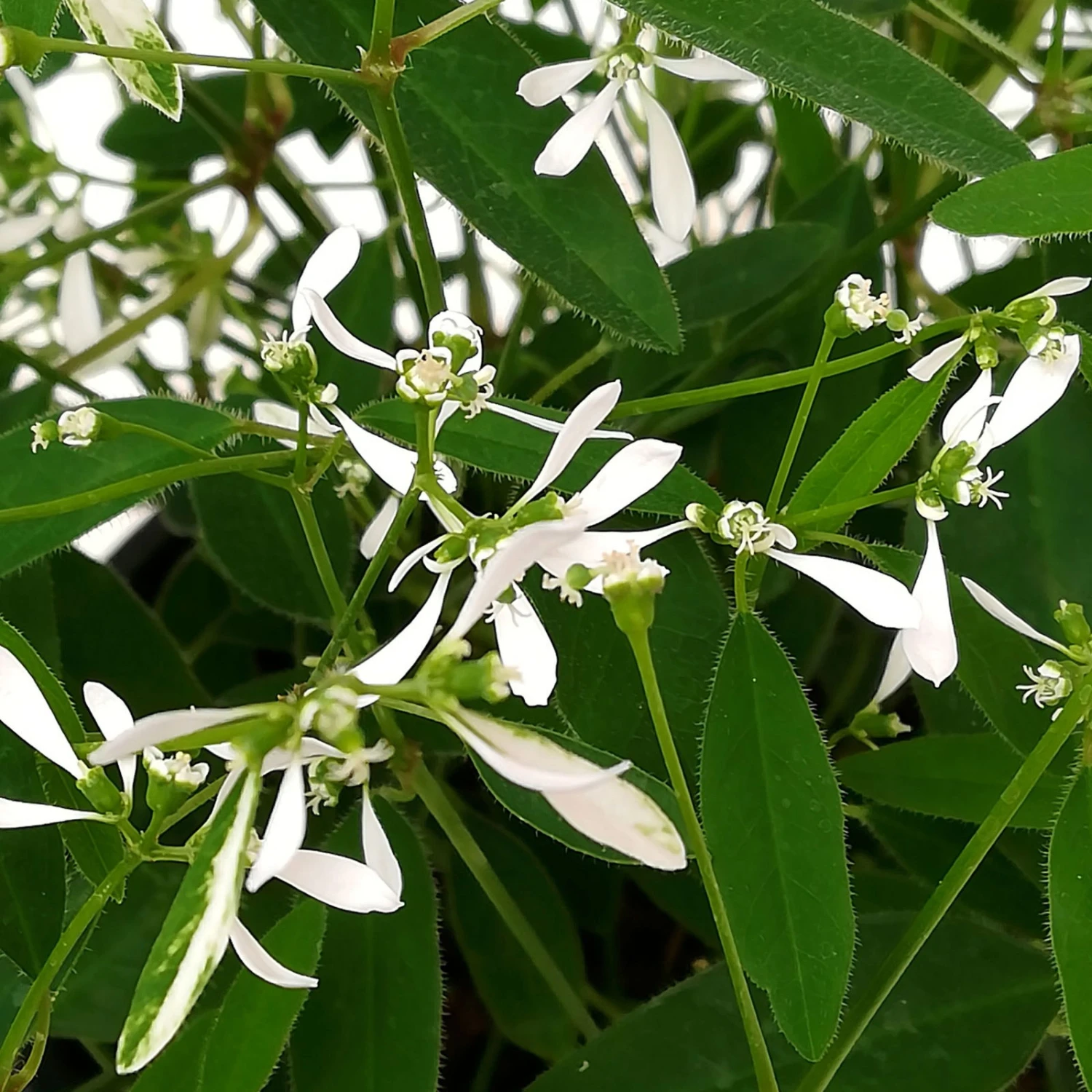 Die Schneewolke (Chamaesyce syn. Euphorbia hypericifolia) mit ihren dunkelgrünen, zarten und länglich ovalen Blättern passt hervorragend zu der Petunie. Die Schneewolke wächst aufrecht, buschig und stark verzweigt. Sie kann ein Wuchshöhe zwischen 30 und 50 cm erreichen. Ihren Ursprung hat die Schneewolke in Amerika.