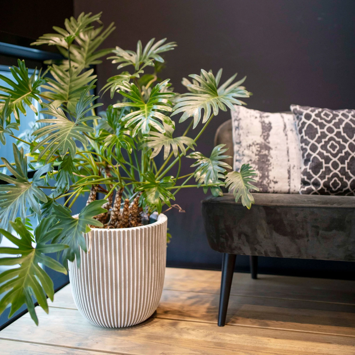 Pflanzgefäß ‚Groove‘, Elfenbein, Ø 35 X H 34 Cm