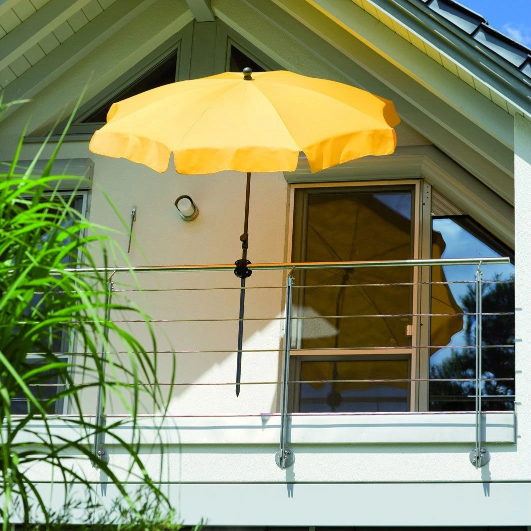 Der Schirmhalter Foxi von Schneider ist eine innovative und unkomplizierte Lösung zum Anbringen von Gartenschirmen am Balkongeländer. Die beiden Halbschalen lassen sich mithilfe von vier mitgelieferten Schrauben fest verschließen und fixieren sicher den Sonnenschirm. Geeignet für Stockdurchmesser 25, 30 und 32 Millimeter.
