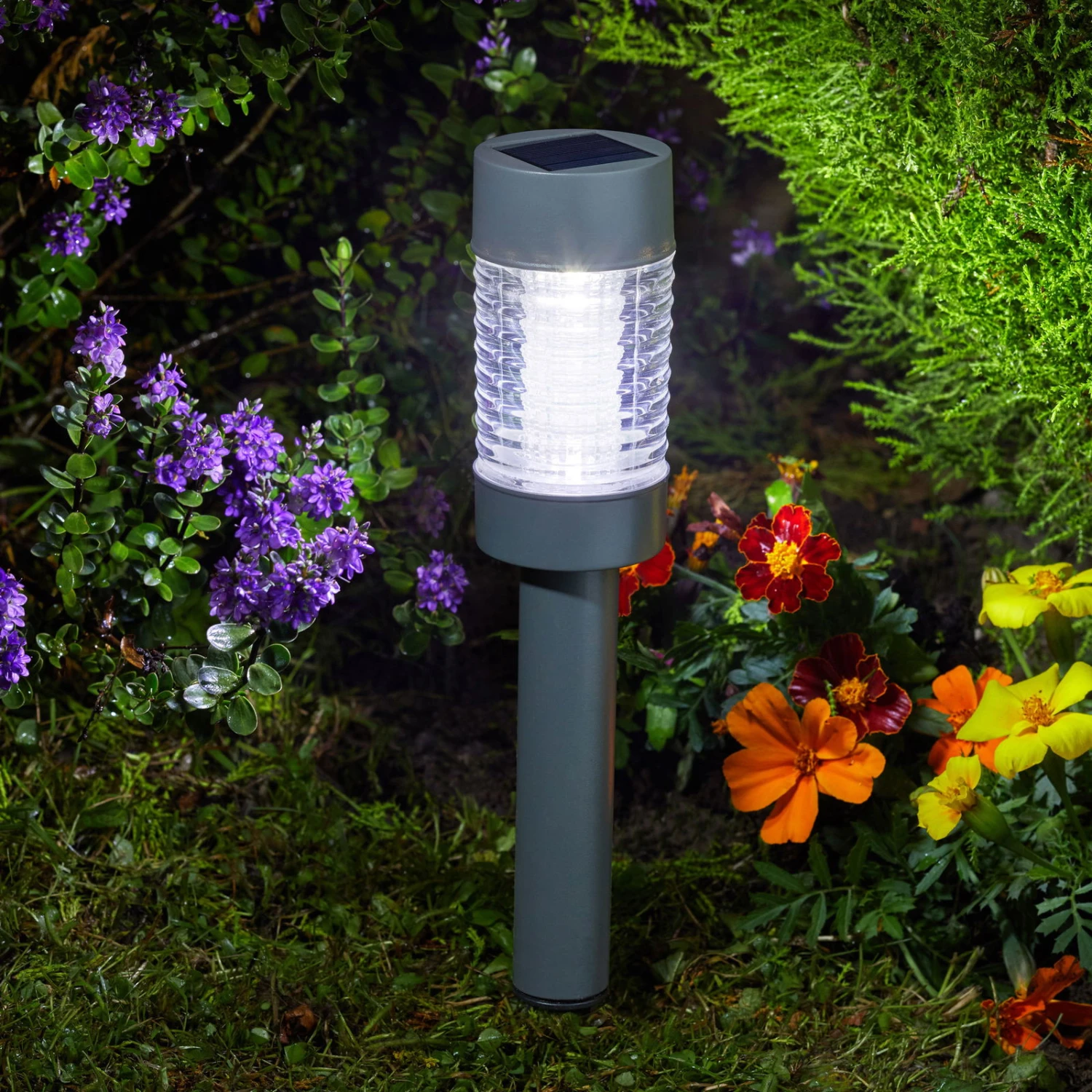 Die Solar Leuchte ‚Martini‘ 365 / 10 Lumen in Dunkelgrau punktet mit ihrer automatischen Helligkeitsanpassung, die sich nach der tagsüber gespeicherten Lichtmenge richtet. Dank der 365 Technologie können Sie diese Leuchte das ganze Jahr über nutzen. Sie hat die Maße 41,5 x 6,2 cm und besteht aus Glas, pulverbeschichtetem Metall und Elektroteilen.