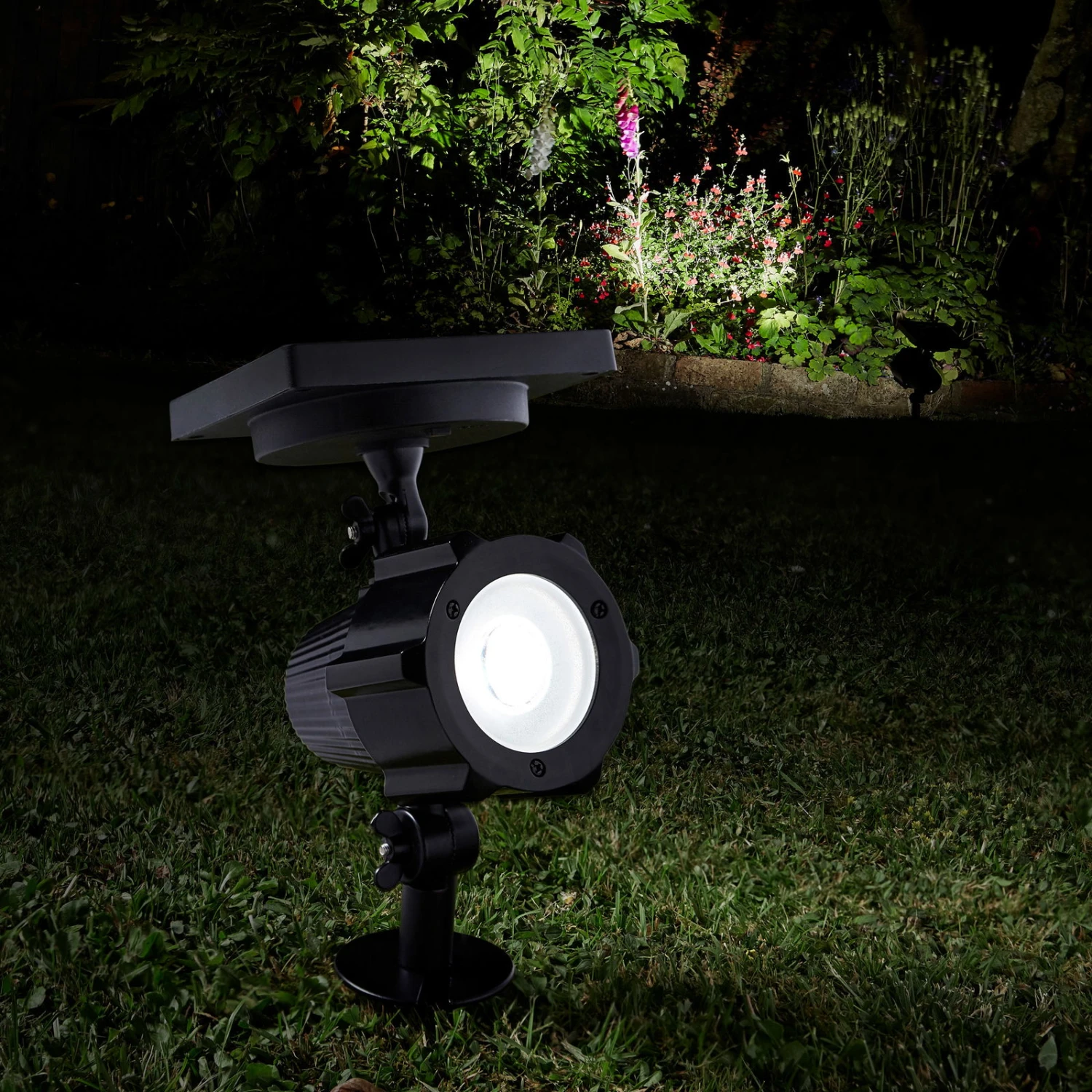 Bringen Sie Licht in Ihren Garten. Der Solarscheinwerfer Optima Spotlight lädt sich im direkten Sonnenlicht auf und spendet bei vollständiger Ladung für bis zu 6 Stunden Helligkeit.