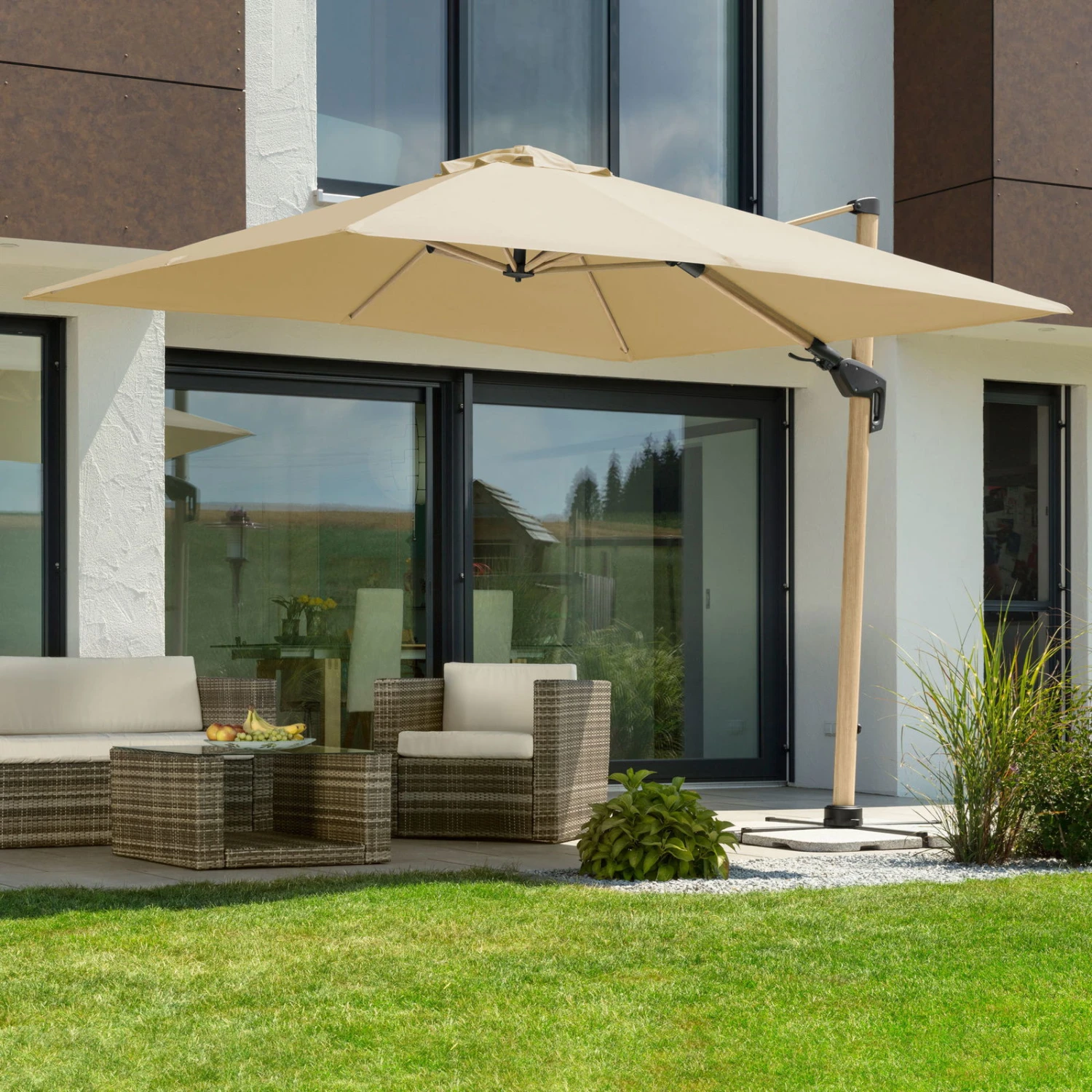 Sonnenschirm ‚Rhodos Twist Woody‘, Natur, Ca. 300 X 300 Cm