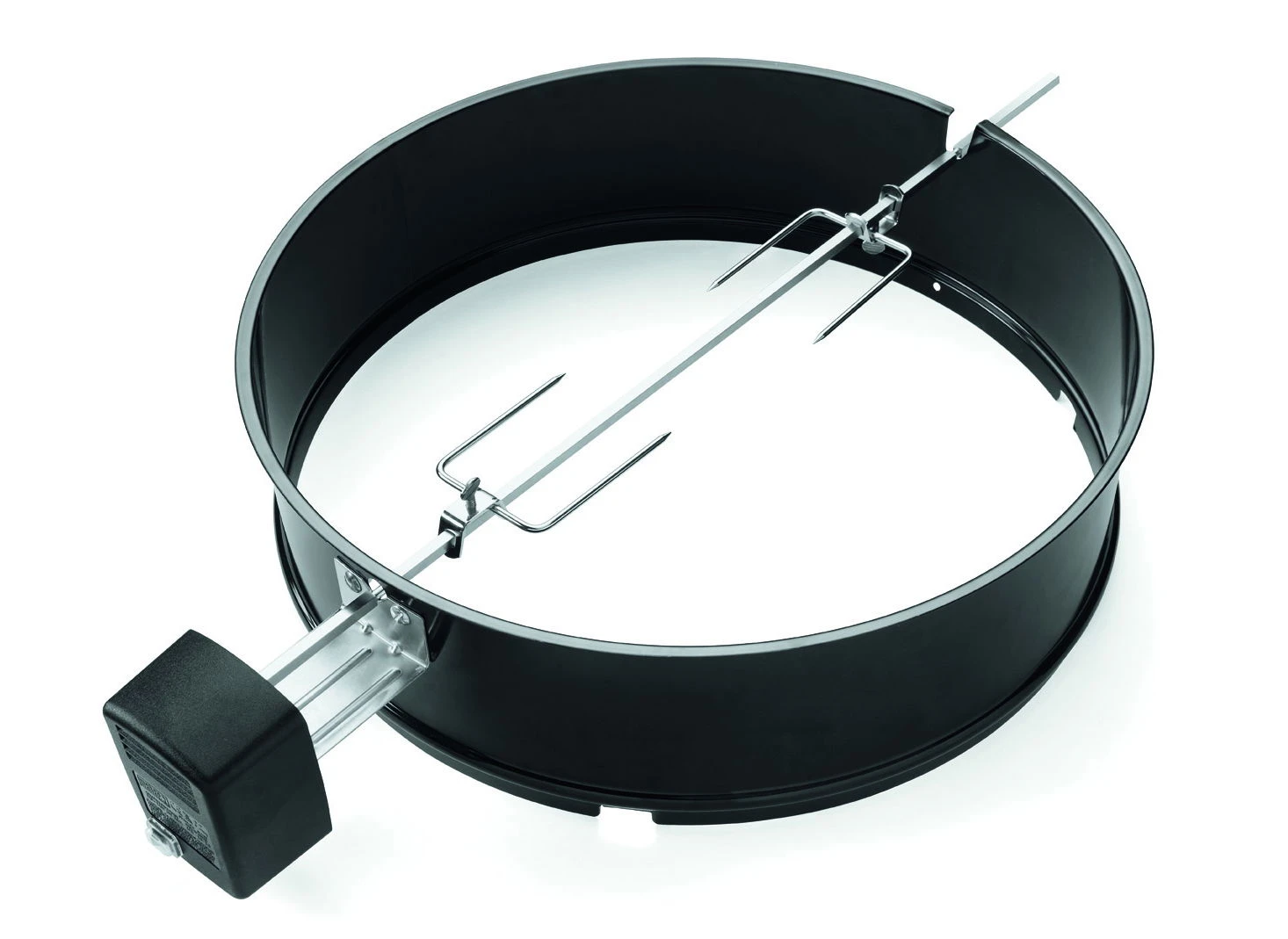 Bringen sie Ihr Grillgut zum rotieren – mit dem Weber® Drehspieß garen Sie Hähnchen & Co. besonders gleichmäßig. Der leistungsstarke elektrische Motor (220-Volt-Anschluss) ermöglicht ein gleichmäßiges Drehen des Grillguts.