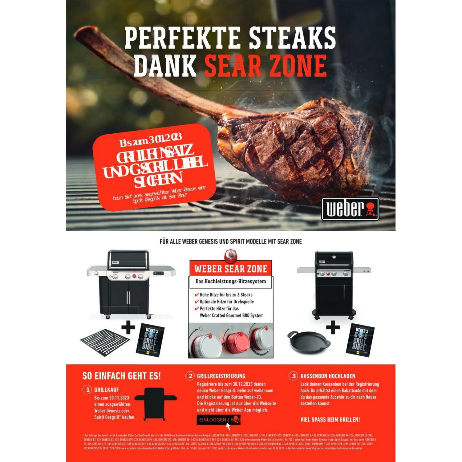 *Vom 19.3. – 2.5.2022 beim Kauf eines Weber Genesis Gasgrills einen Drehspiess sichern. Nur solange der Vorrat reicht. Gilt für den Kauf eines Weber Genesis Modell 2022 Gasgrills im Aktionszeitraum 19.3.–2.5.2022 und Erstellen der Weber-ID auf weber.com bis zum 15.05.2022. Jeder Kassenzettel berechtigt nur zur einmaligen Teilnahme an der Frühlingsstart-Aktion.