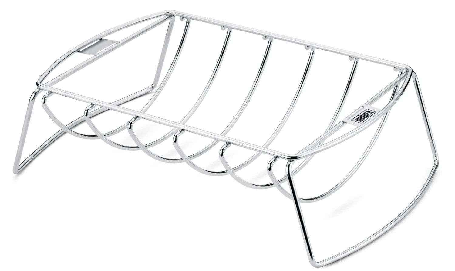Doppelt praktisch in bewährter Weber® Qualität: Je nachdem, welche Seite Sie benutzen, lassen sich größere Fleischstücke (Huhn, Braten) schonend garen oder Spare Ribs und Hähnchenschenkel platzsparend grillen. Eine darunter stehende Alu-Tropfschale sammelt den Bratensaft.