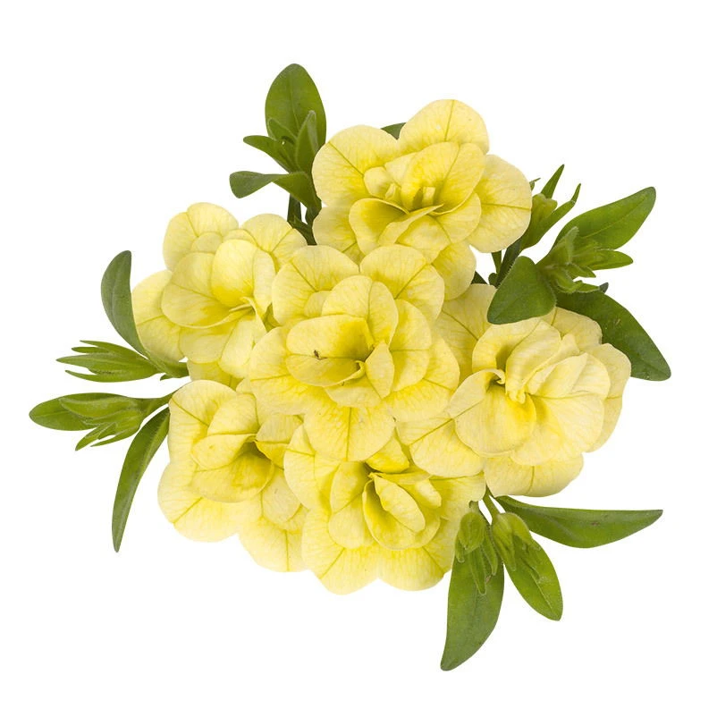 Die elliptischen und leicht klebrigen Blätter der Zauberglöckchen (Calibrachoa Hybride ‚MiniFamous® Neo Double Lemon‘) begeistern mit ihrem kräftigen Grün. Das Zauberglöckchen wächst in Kasten, Kübel oder Ampel kompakt bis überhängend. Auf dem Beet oder Grab ausgepflanzt, ist es bodendeckend. Die Zauberglöckchen zählen zu den Nachtschattengewächsen. Die bei uns einjährige Sommerblume kann eine Wuchslänge von ca. 50 cm erreichen.